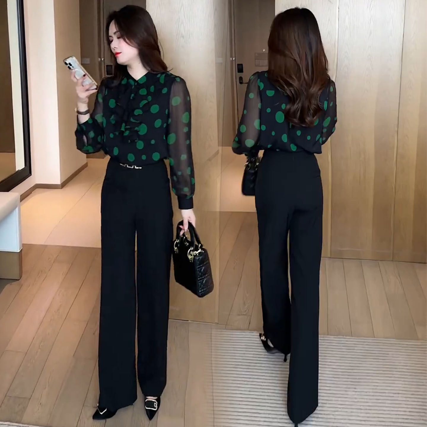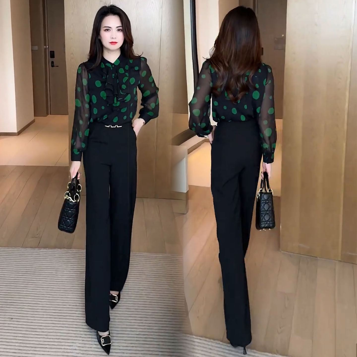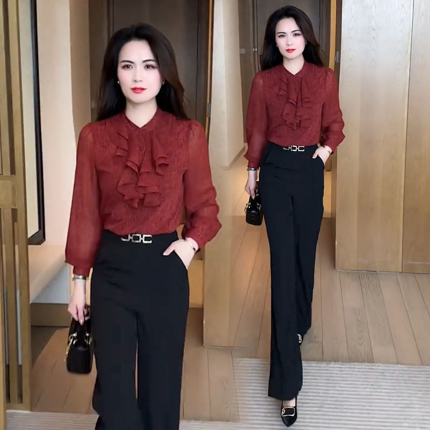 时尚气质套装女2026春季新款洋气显瘦雪纺衬衫上衣阔腿裤两件套潮
