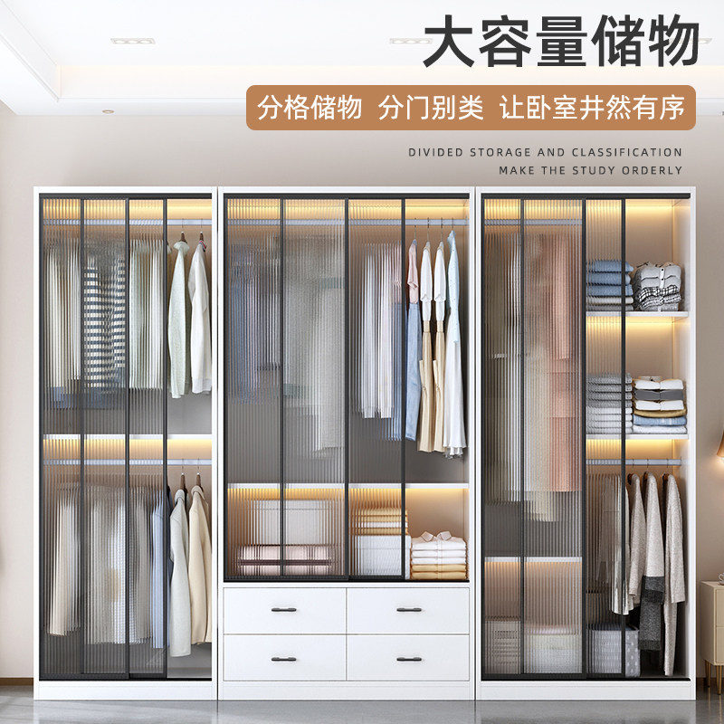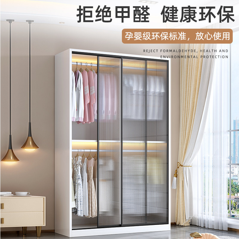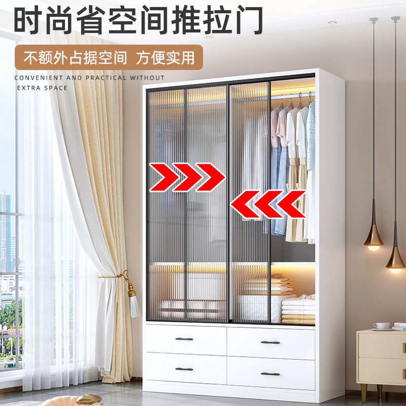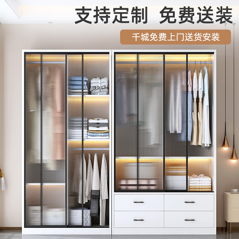 推拉门衣柜卧室家用实木收纳儿童出租房移门长虹玻璃耐用定制柜子
