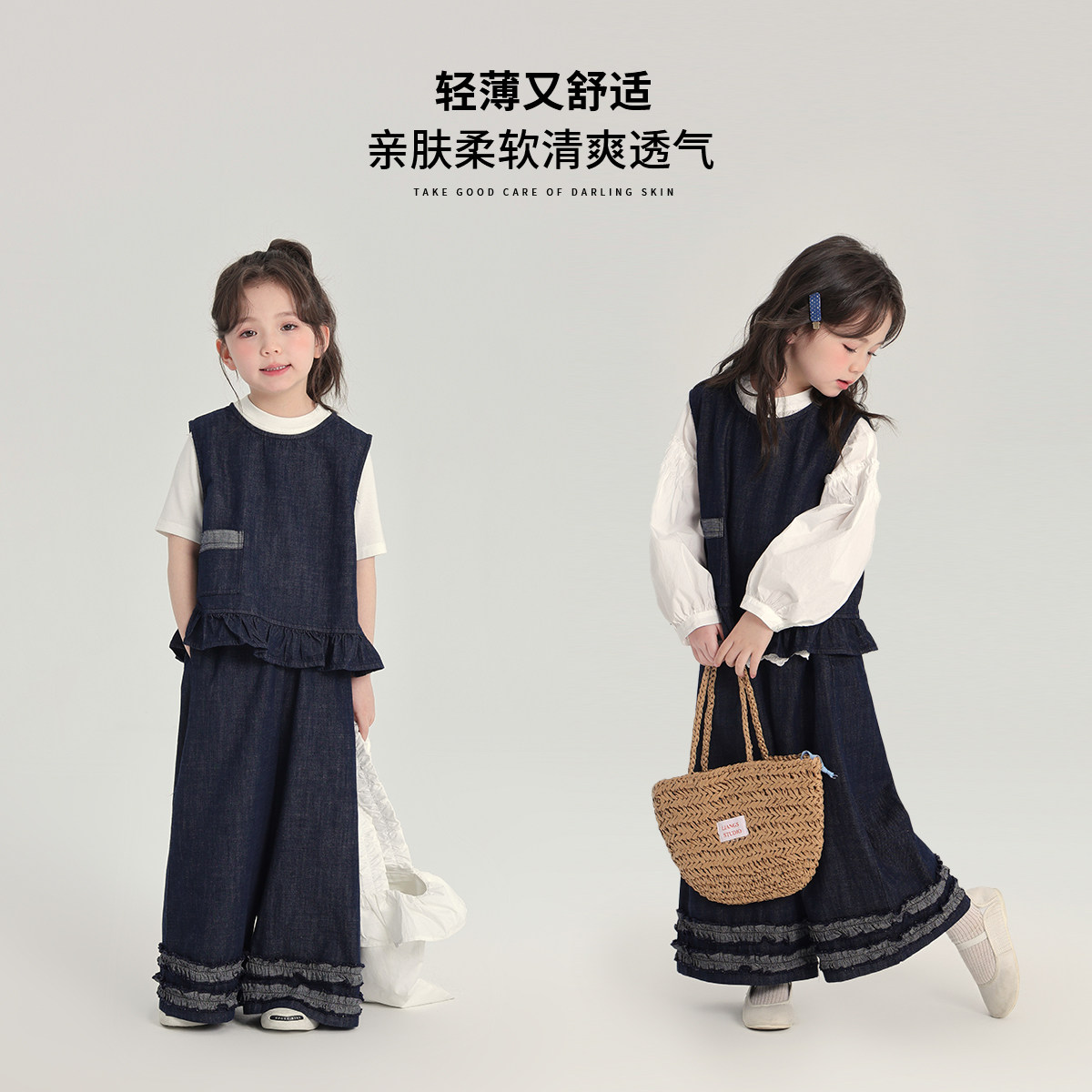 布丁哈鲁童装秋装女童套装2026新款儿童春秋牛仔背心裤子两件套