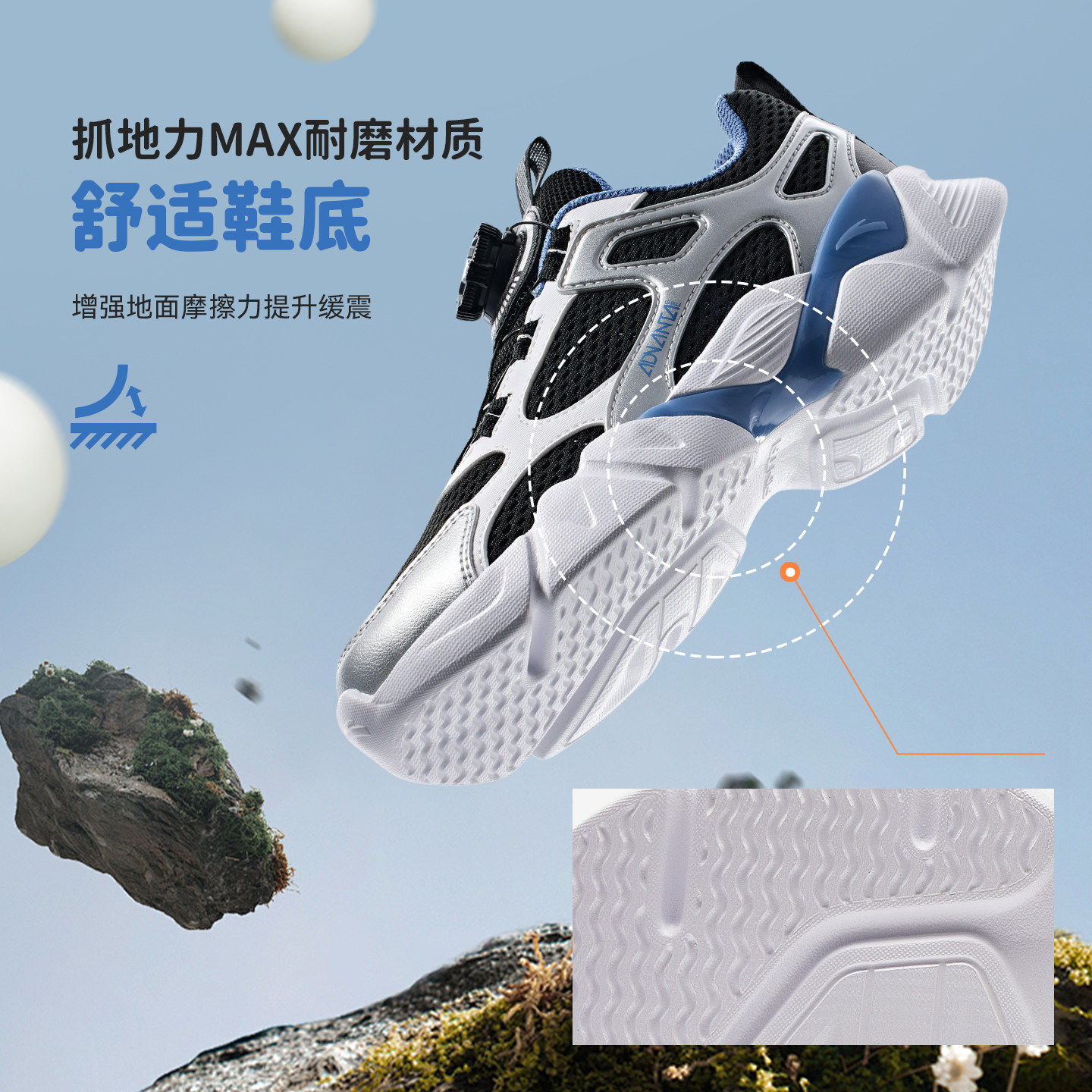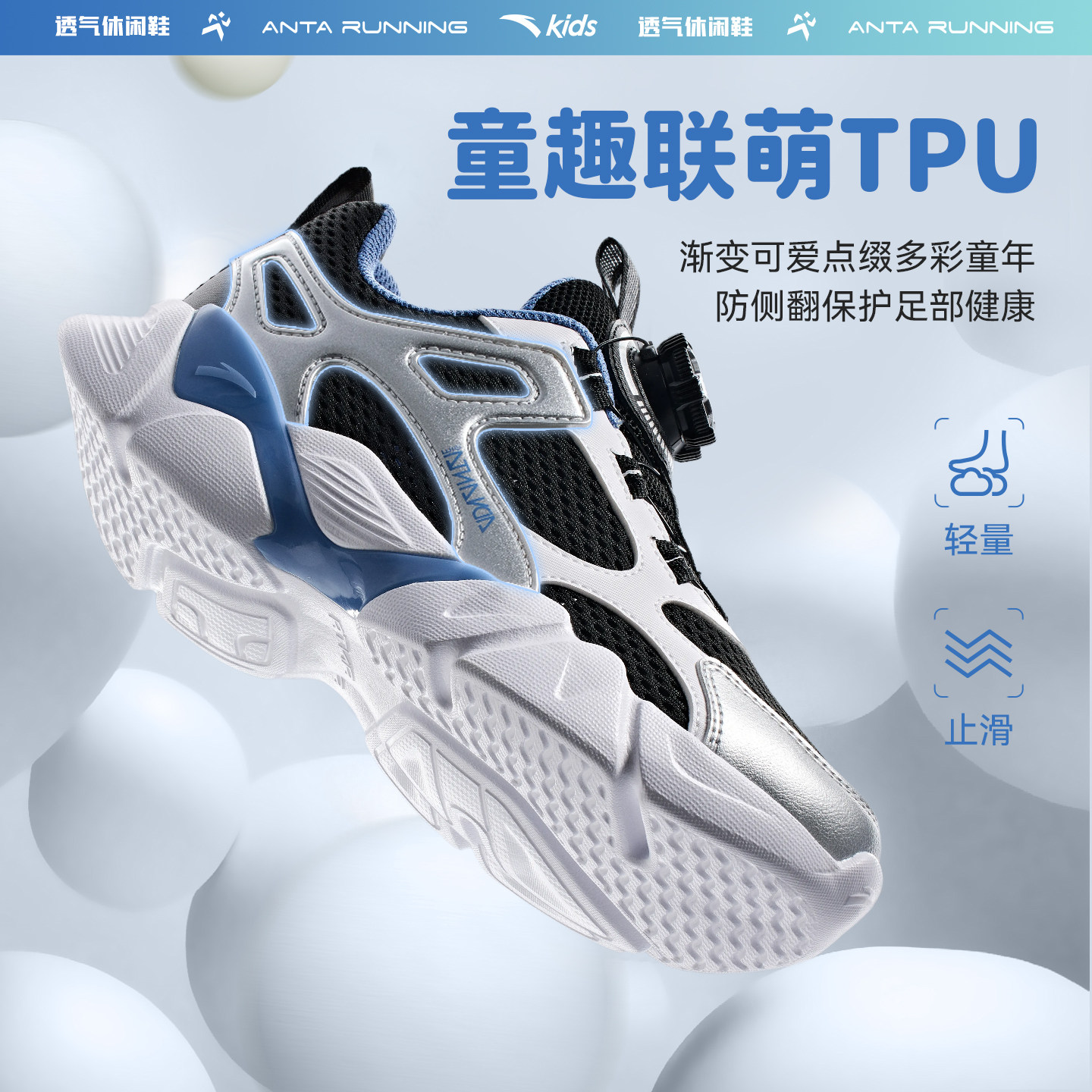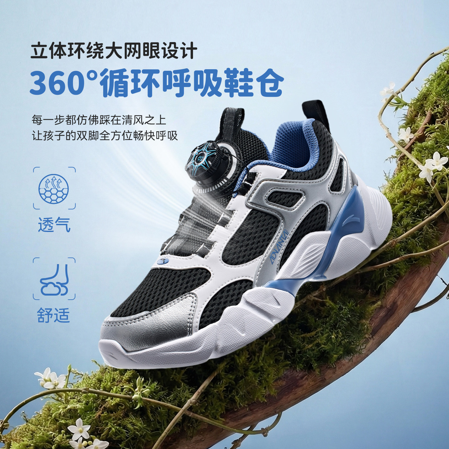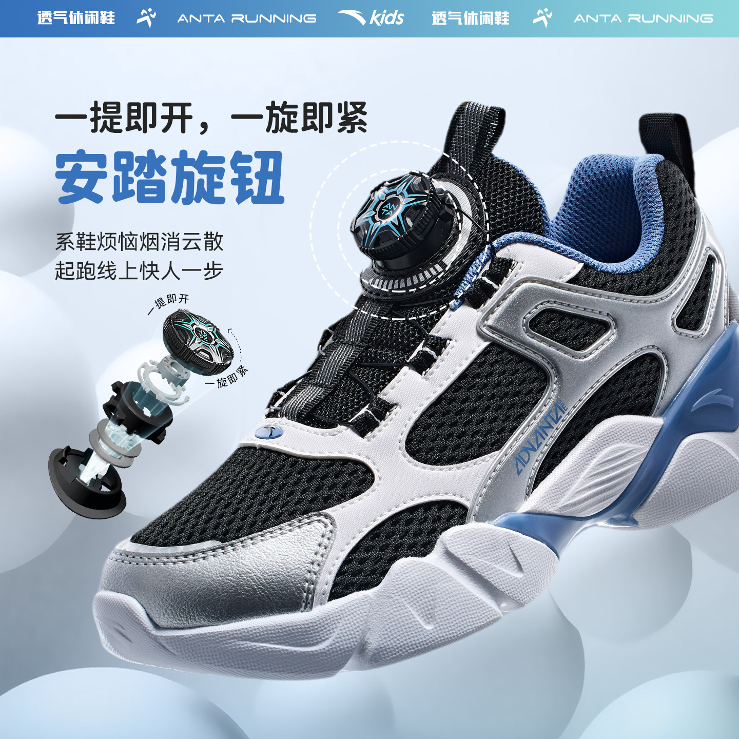 安踏儿童运动鞋男童鞋2026春夏新款网面透气休闲鞋旋钮扣女童鞋子