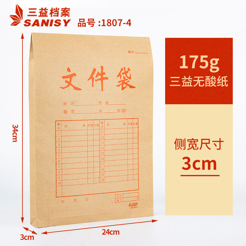 311线报网描述:3cm宽 25个装 A4档案袋 175g无酸纸