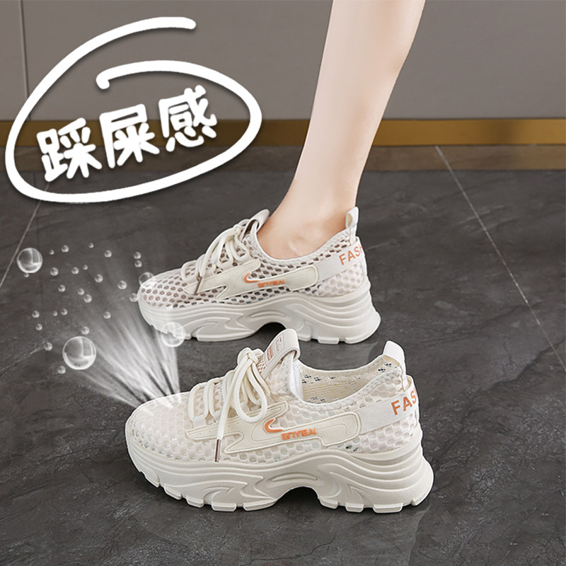 爆款网鞋女透气网面夏季薄款网眼镂空厚底运动老爹鞋不闷脚小白鞋