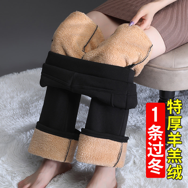 加绒喇叭裤女秋冬加厚棉裤冬天妈妈微喇裤子冬季外穿羊羔绒直筒裤