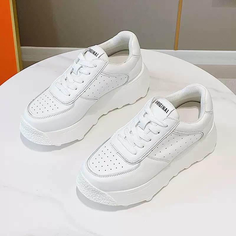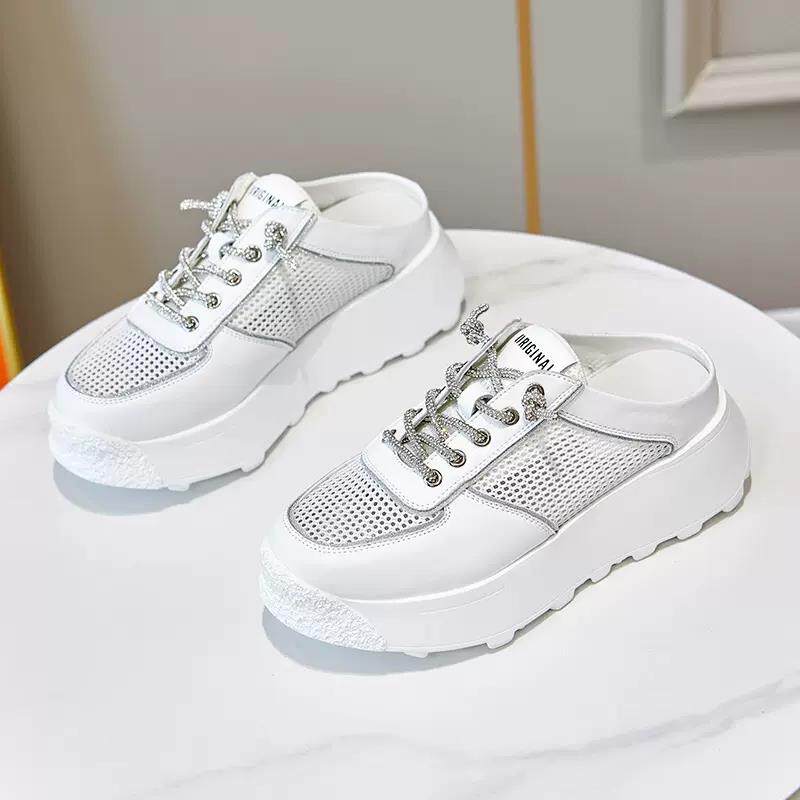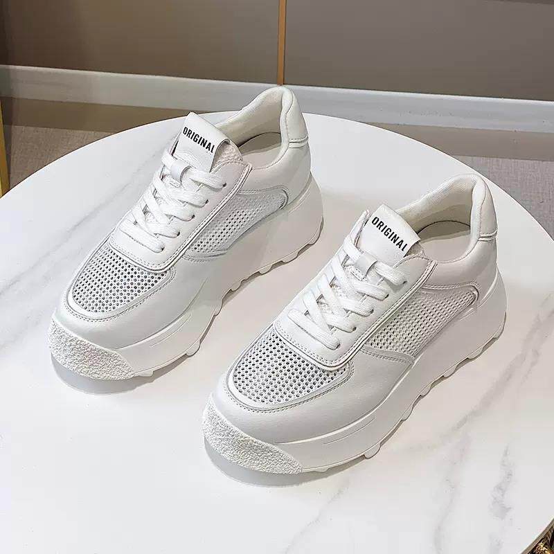 欧洲站厚底真皮小白鞋2025春夏新款网面女鞋松糕鞋内增高老爹鞋女