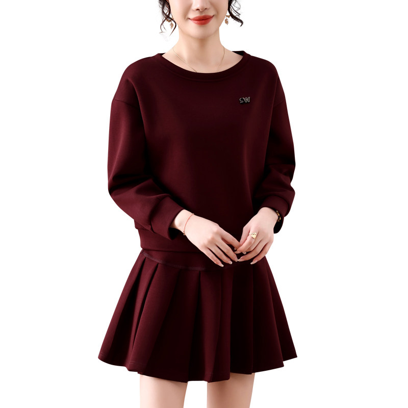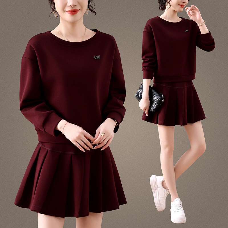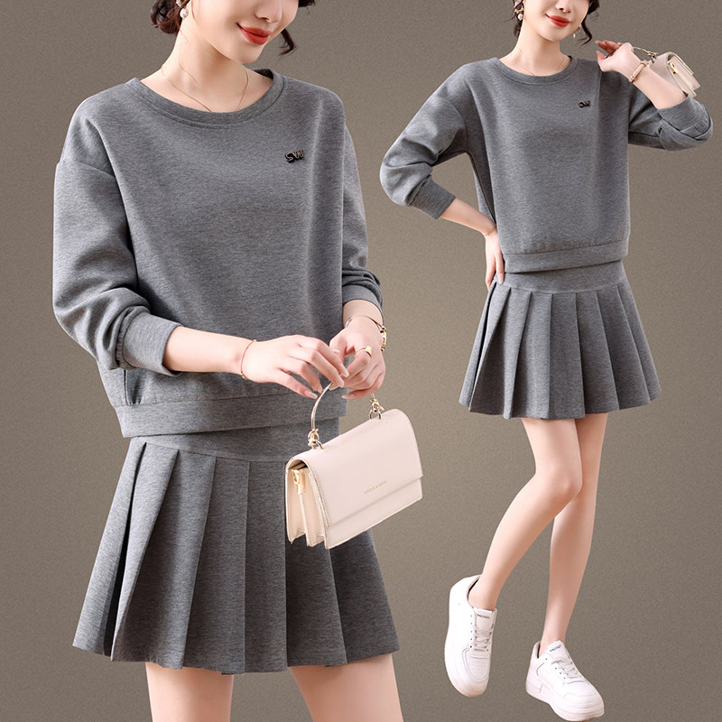 韩版通勤两件套连衣裙女2026新款春季显瘦收腰A字裙小个子百褶裙