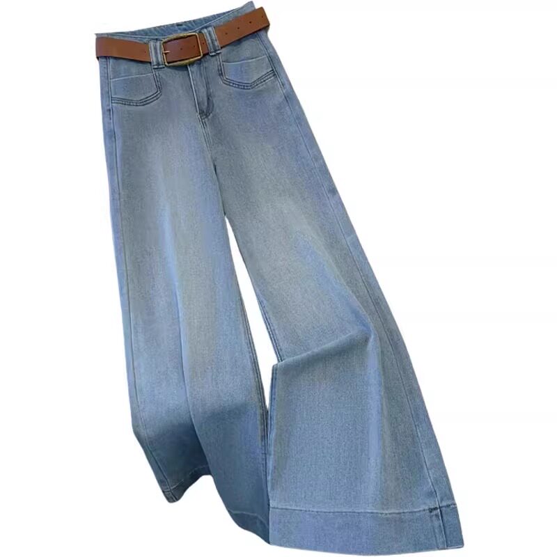 微喇大阔腿牛仔裤女春夏季2026年新款爆款小个子浅色直筒喇叭裤子