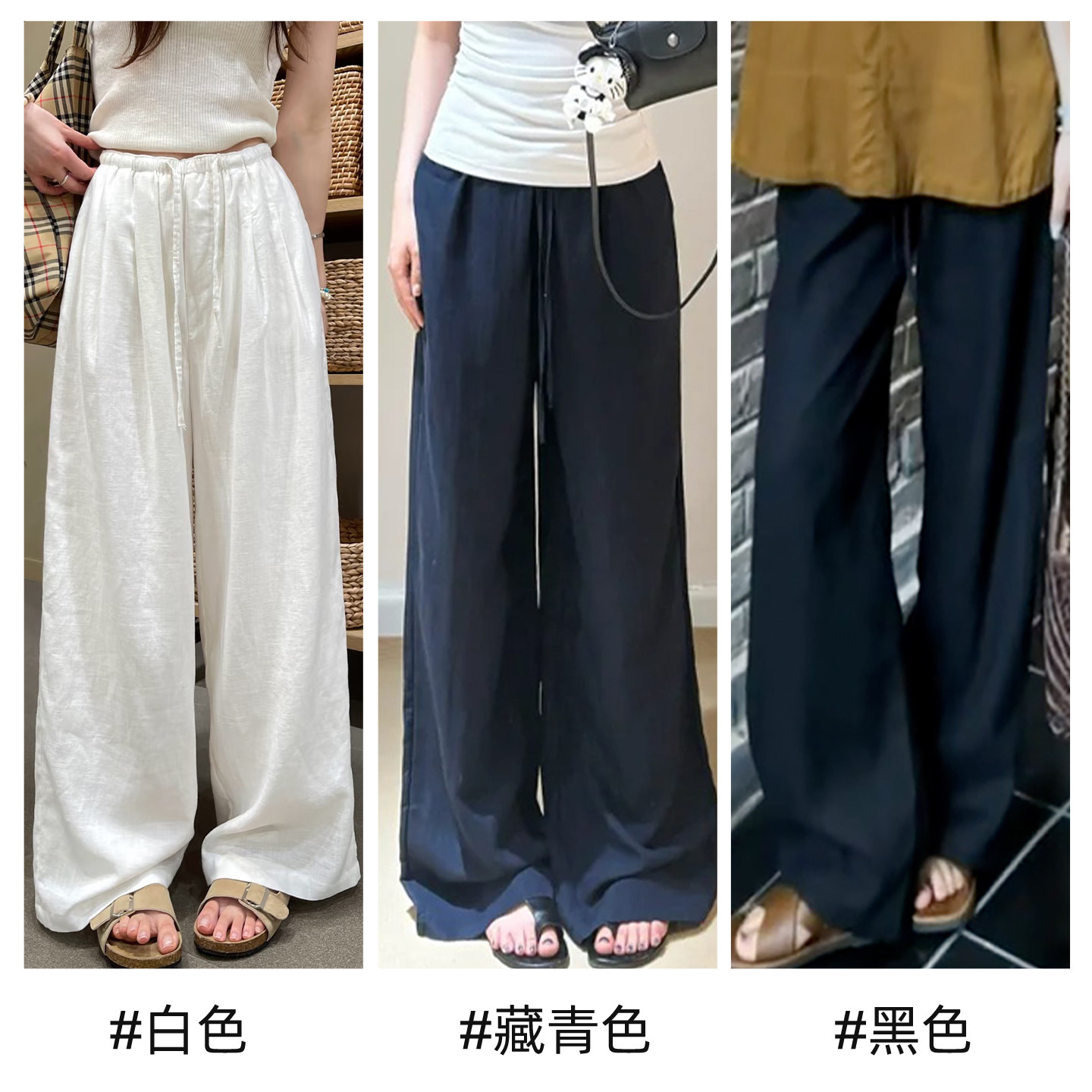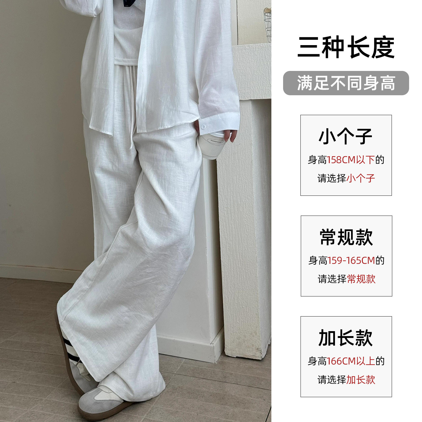 白色棉麻阔腿裤女春夏季2026年新款宽松小个子慵懒拖地冰丝休闲裤