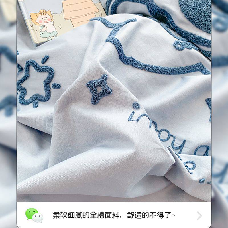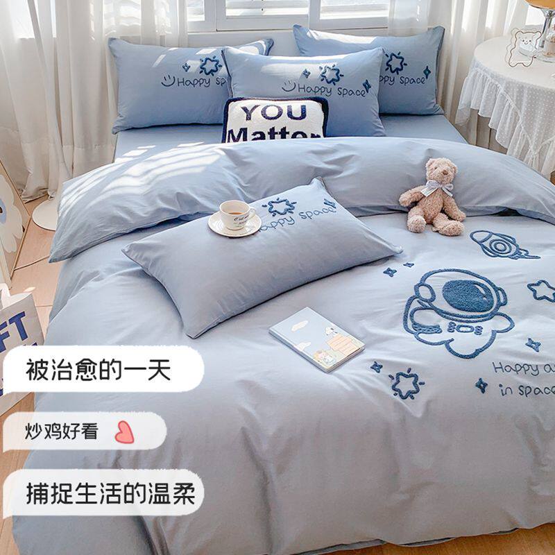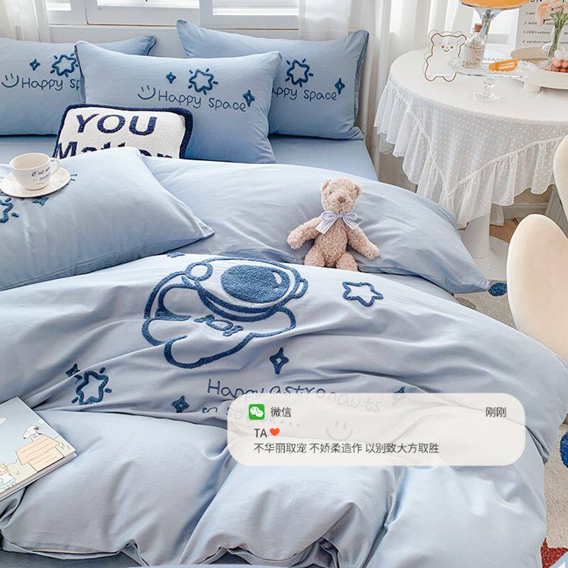 刺绣卡通纯棉全棉四件套床单被套简约床上用品男孩春夏季被单被罩