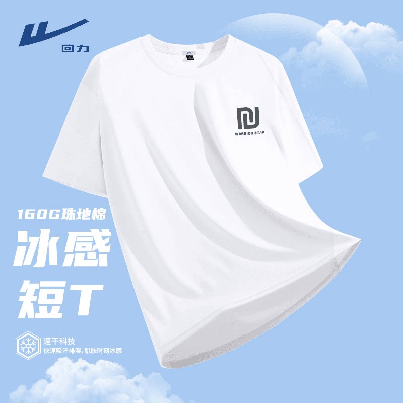 回力冰丝短袖男款夏季宽松休闲薄款T恤青少年轻薄透气速干体恤