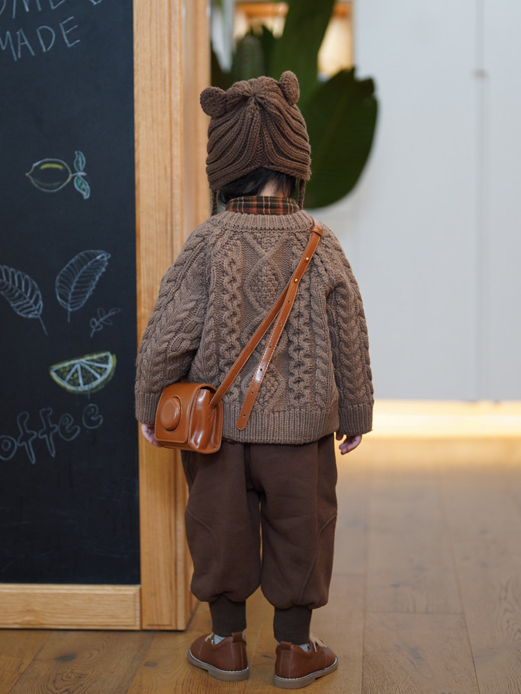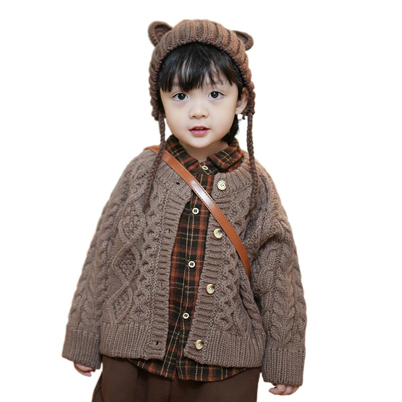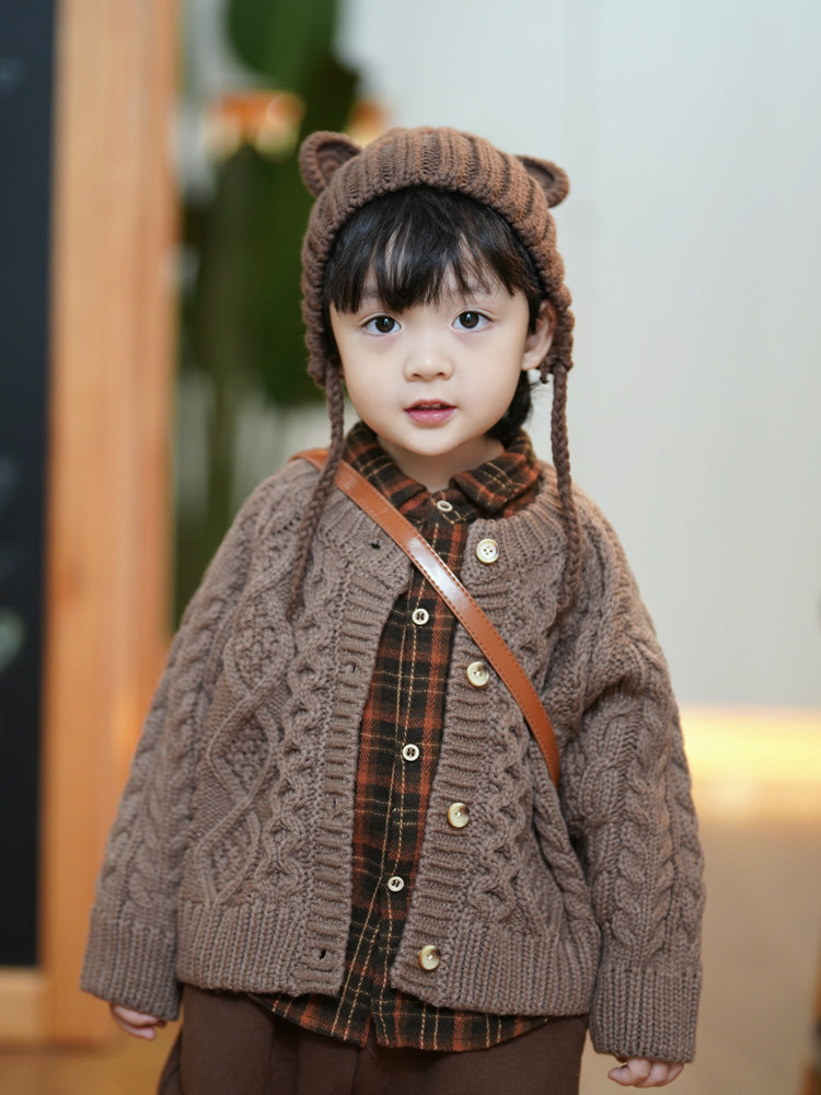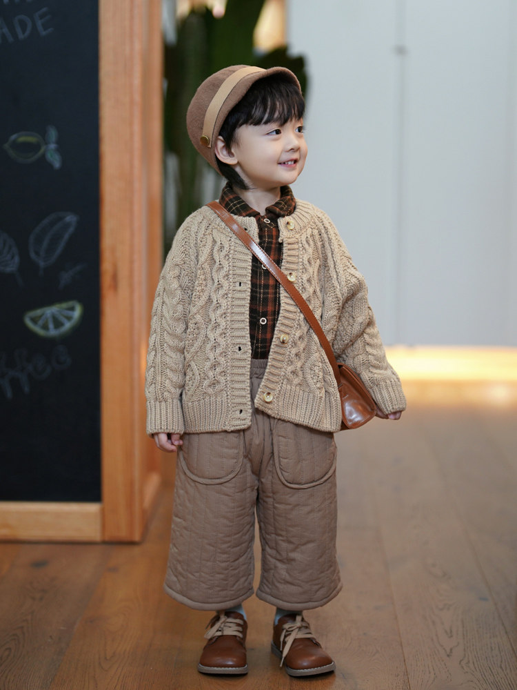 砚台家韩国儿童开衫毛衣针织衫男女童重工加厚纯色婴儿外套潮冬季