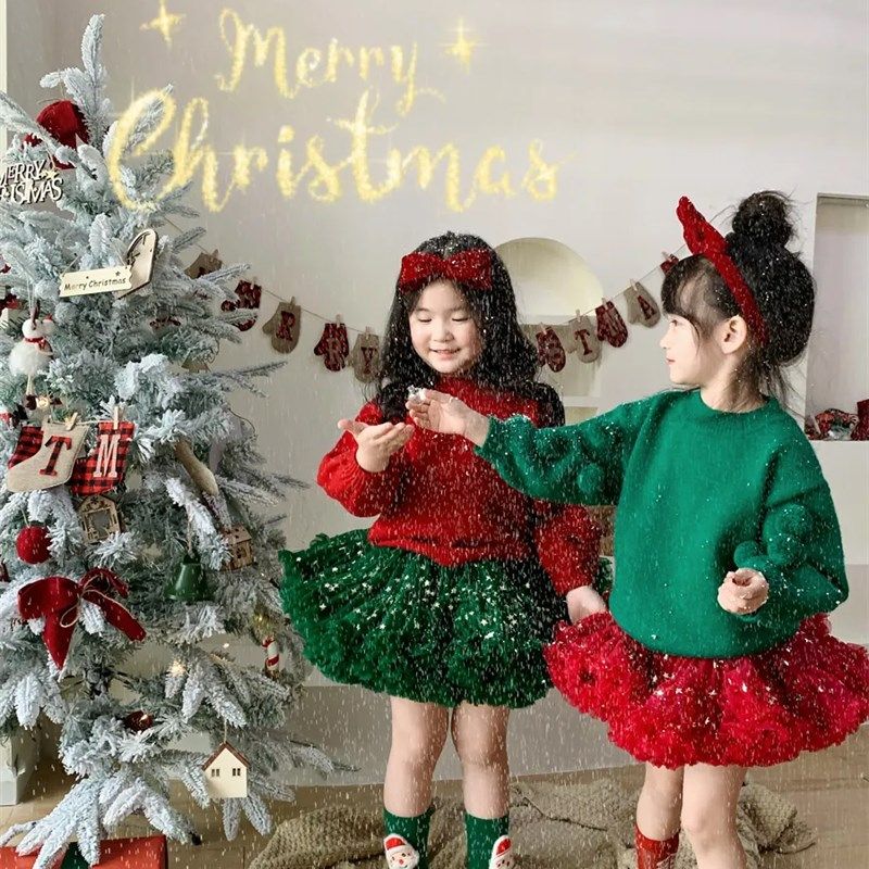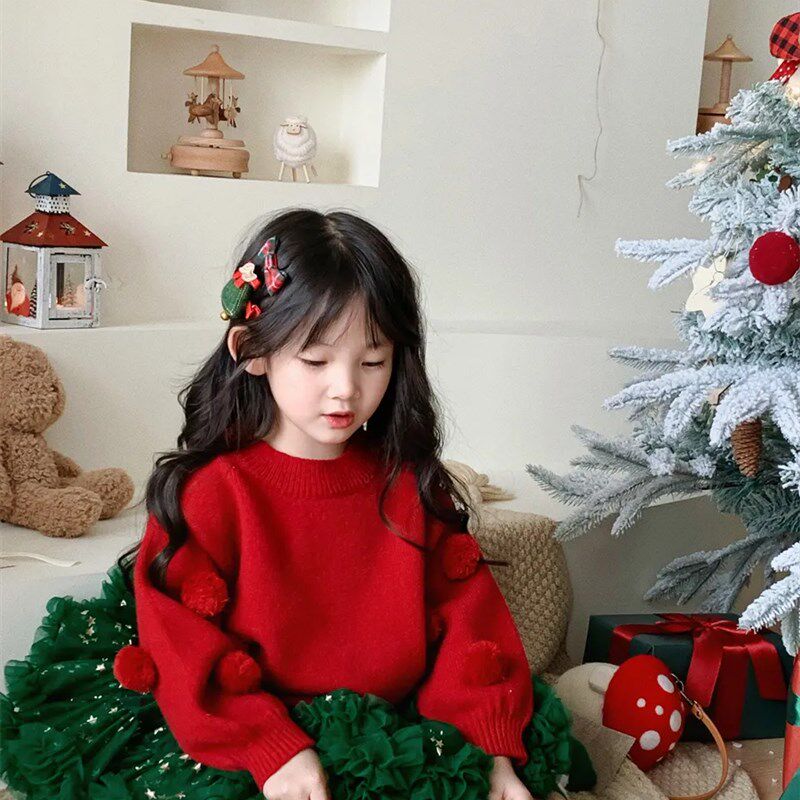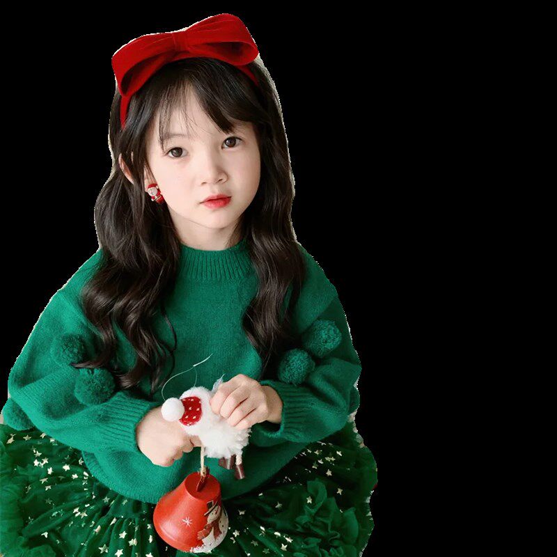 圣诞穿搭女童针织打底衫秋冬内搭薄款2023新款红色上衣绿色毛衣春