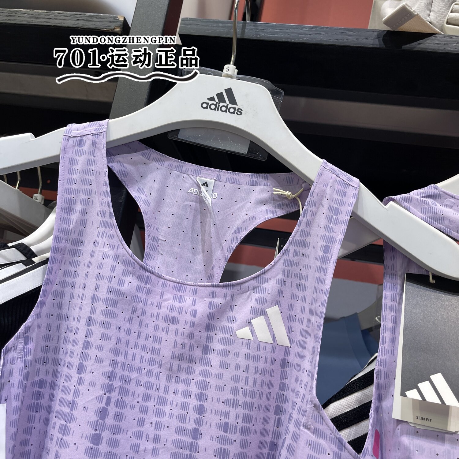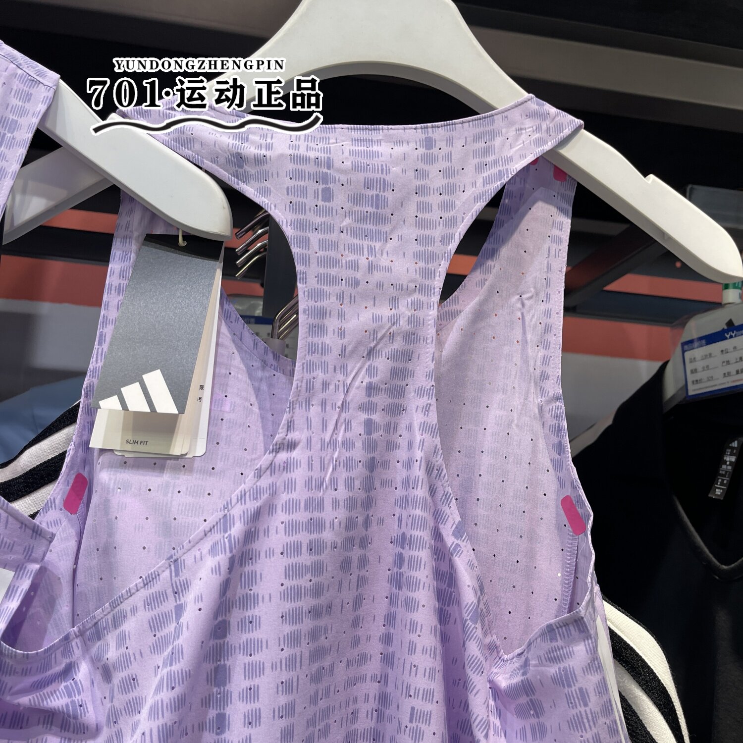 正品阿迪达斯女子三条杠网眼透气马拉松运动速干背心T恤 JV7157