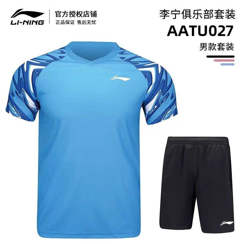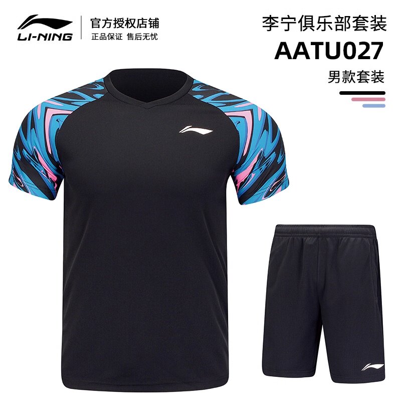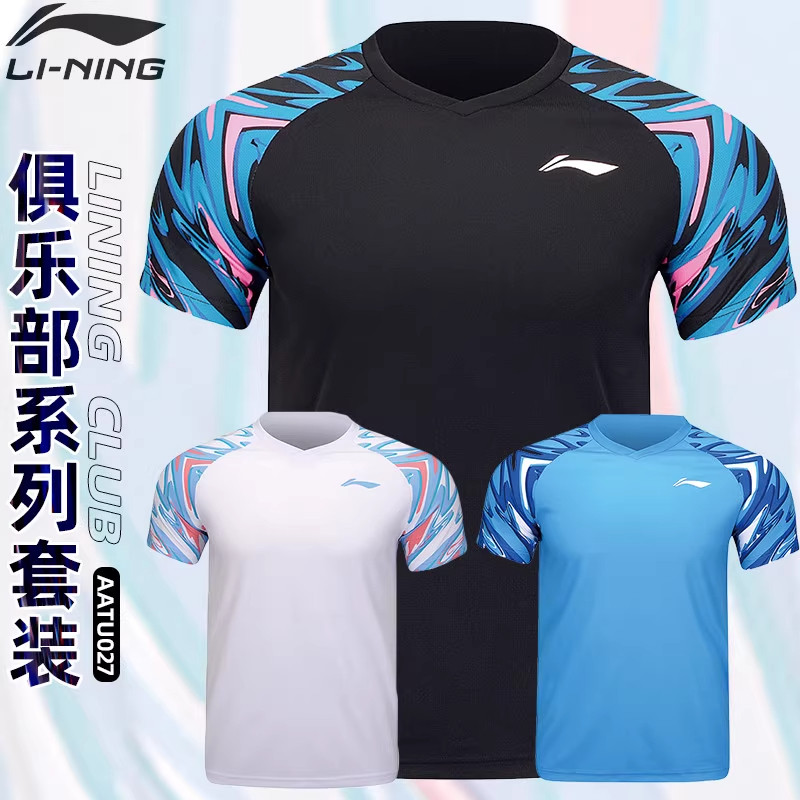 新款李宁LINING羽毛球服套装透气速干运动短袖男女款团购训练比赛