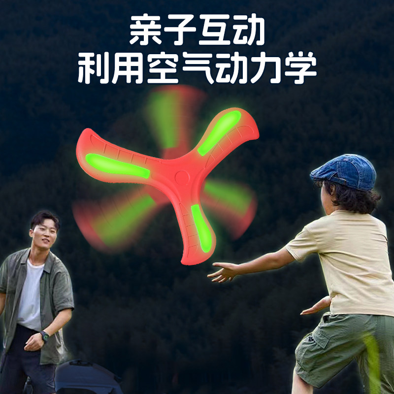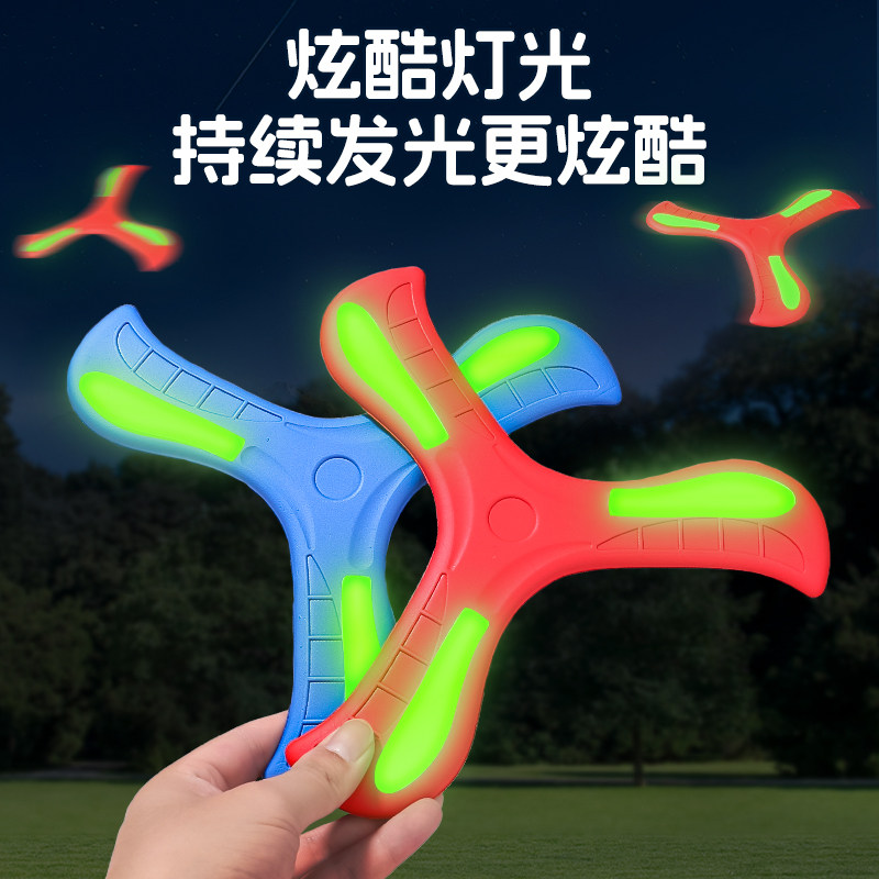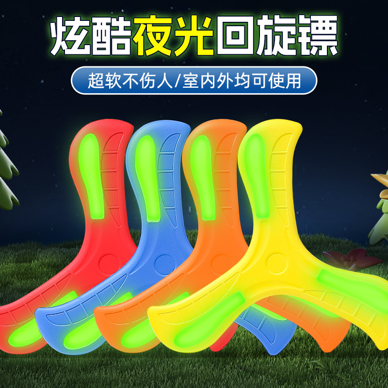 夜光回旋镖儿童户外软可回旋发光飞盘摔不烂亲子公园运动飞镖玩具