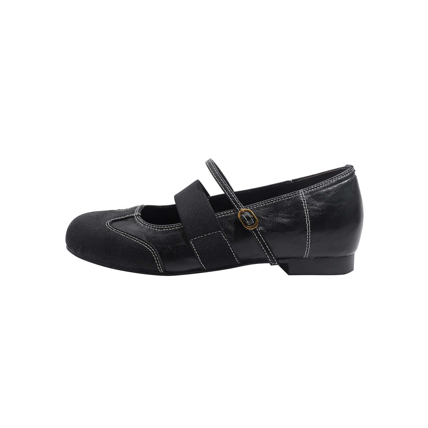 真皮~骄屿法式复古弹力带玛丽珍鞋粗跟平底圆头百搭浅口通勤单鞋