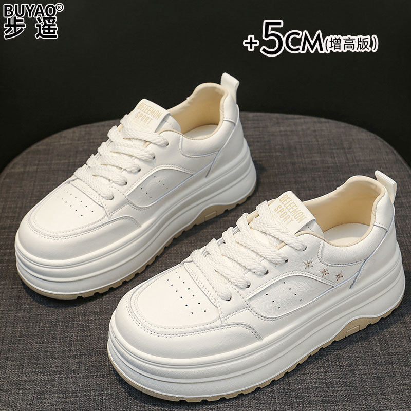 牛皮鞋子女厚底不累脚单鞋百搭2026新款休闲运动鞋女款小白鞋