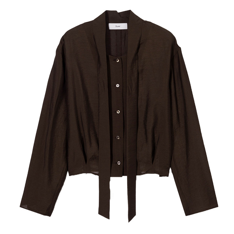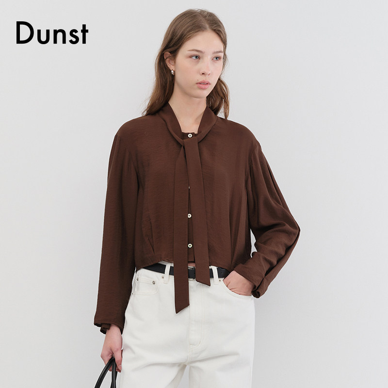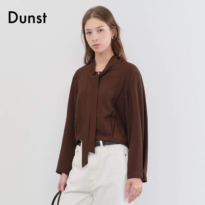 Dunst女士上衣优雅高级感领带装饰贝壳纽扣细节缎面衬衫UDBL5C203