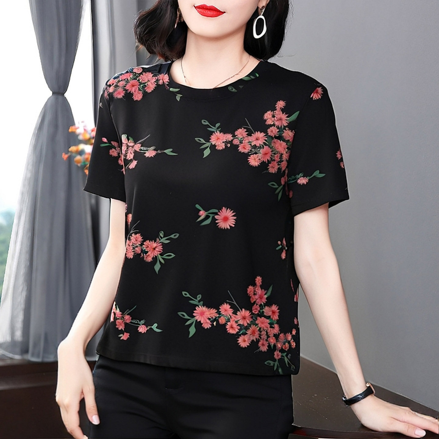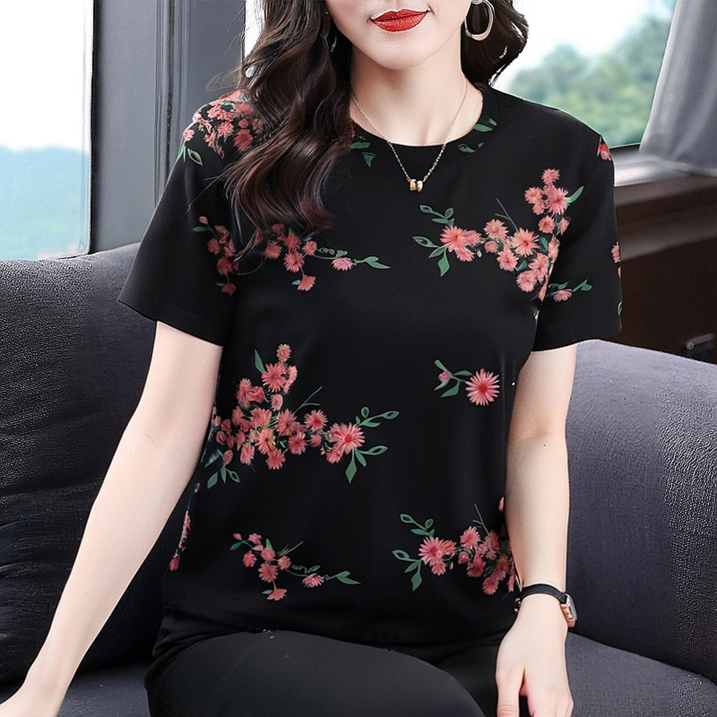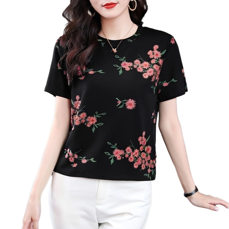 上衣女2026新款爆款短袖t恤女装宽松时尚印花套头韩版夏季体恤衫