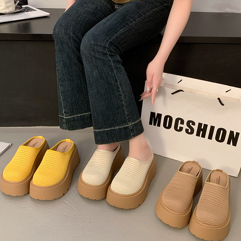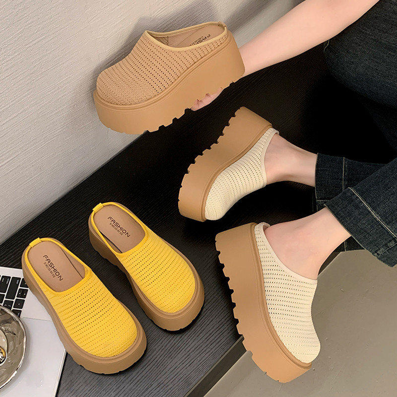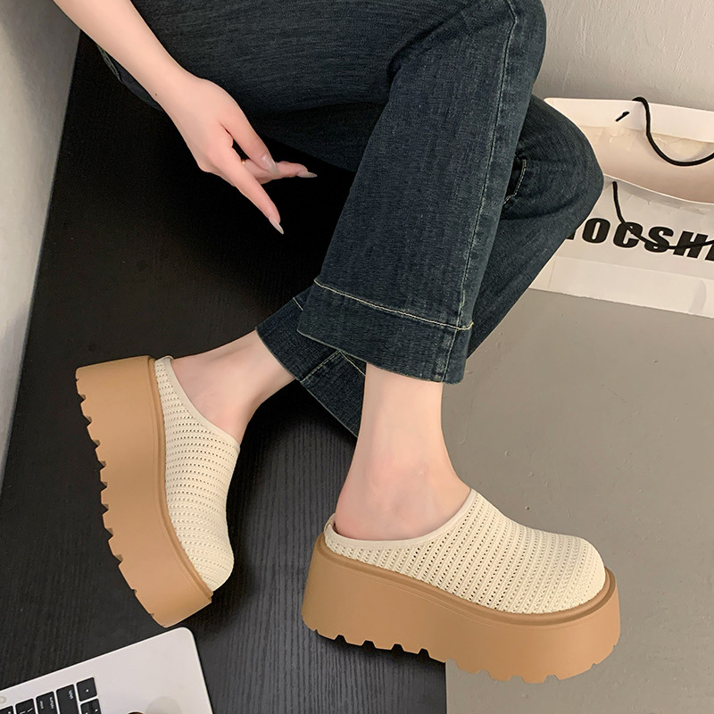 厚底高跟网面勃肯鞋包头半拖鞋女夏外穿2026新款一脚蹬单鞋凉拖鞋