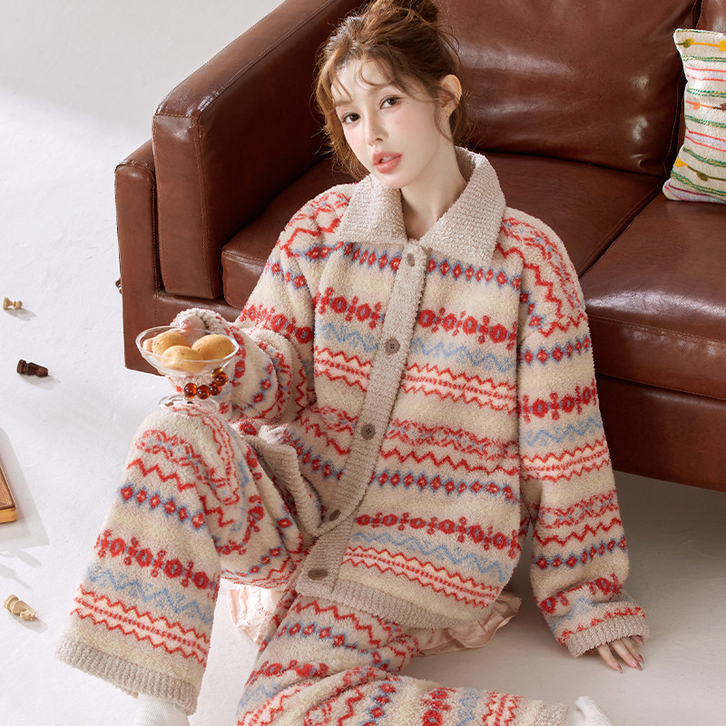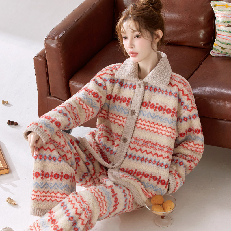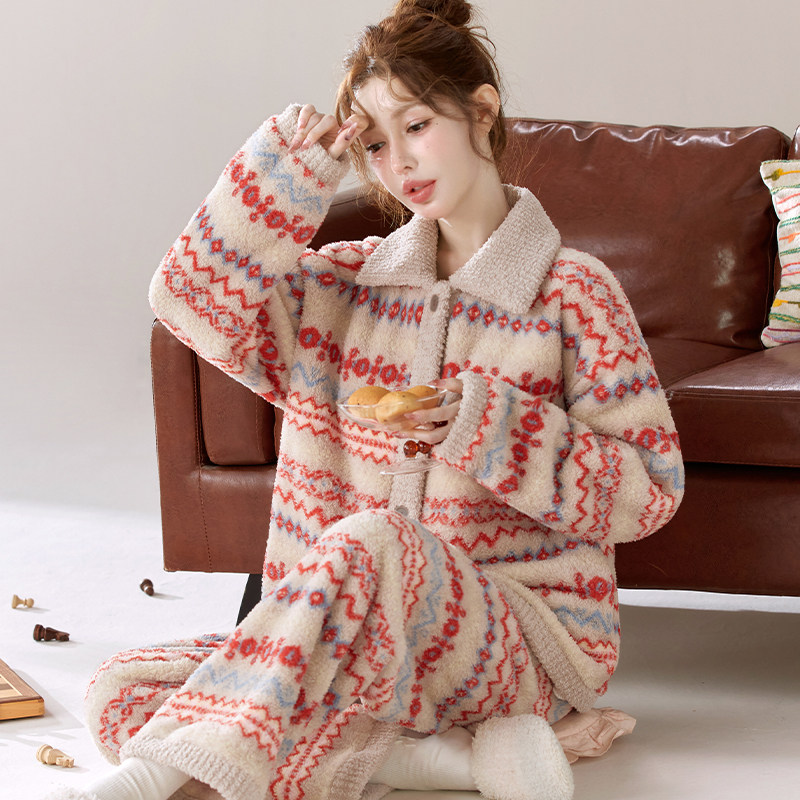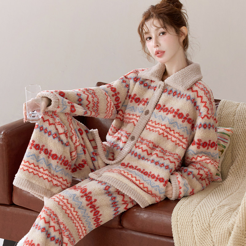 睡衣套装加厚加绒可外穿法兰绒家居服秋冬暖绒保暖可爱睡衣女士