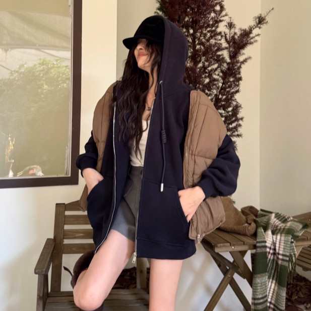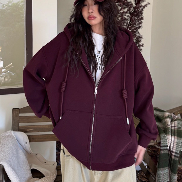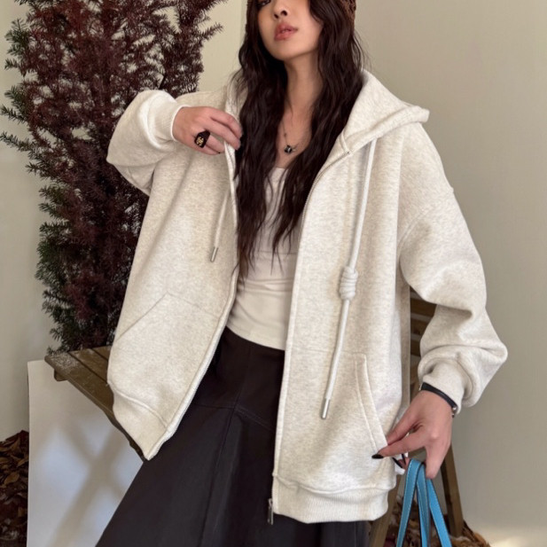 加厚加绒拉链连帽卫衣女秋冬季新款宽松加绒休闲开衫外套