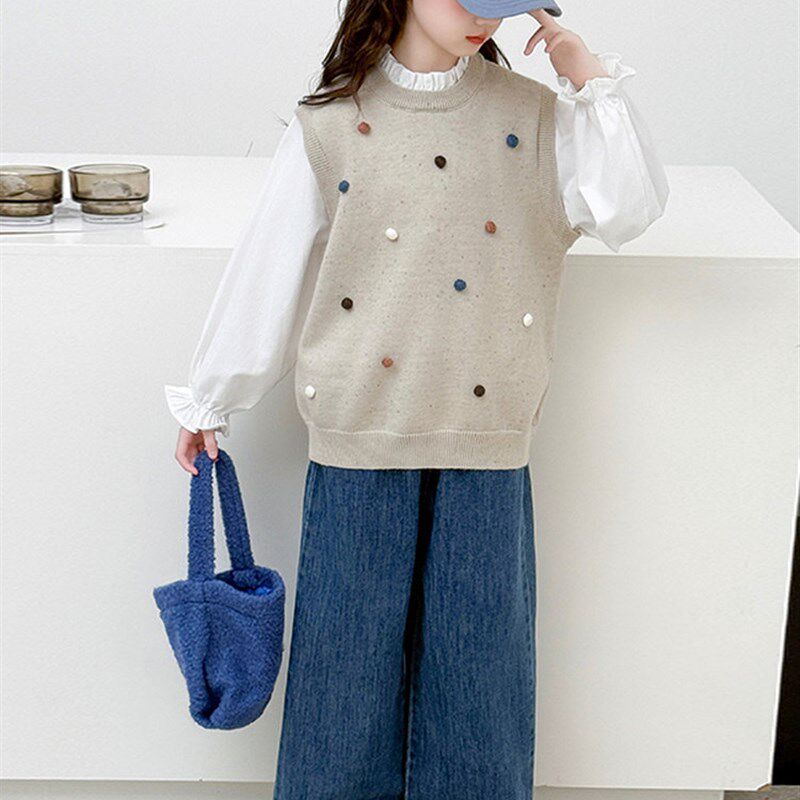 女童假两件毛衣套装秋季新款儿童马甲裤子两件套女孩韩版休闲童装
