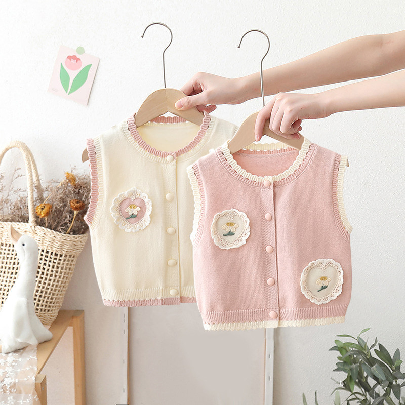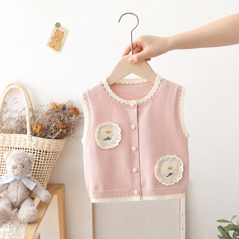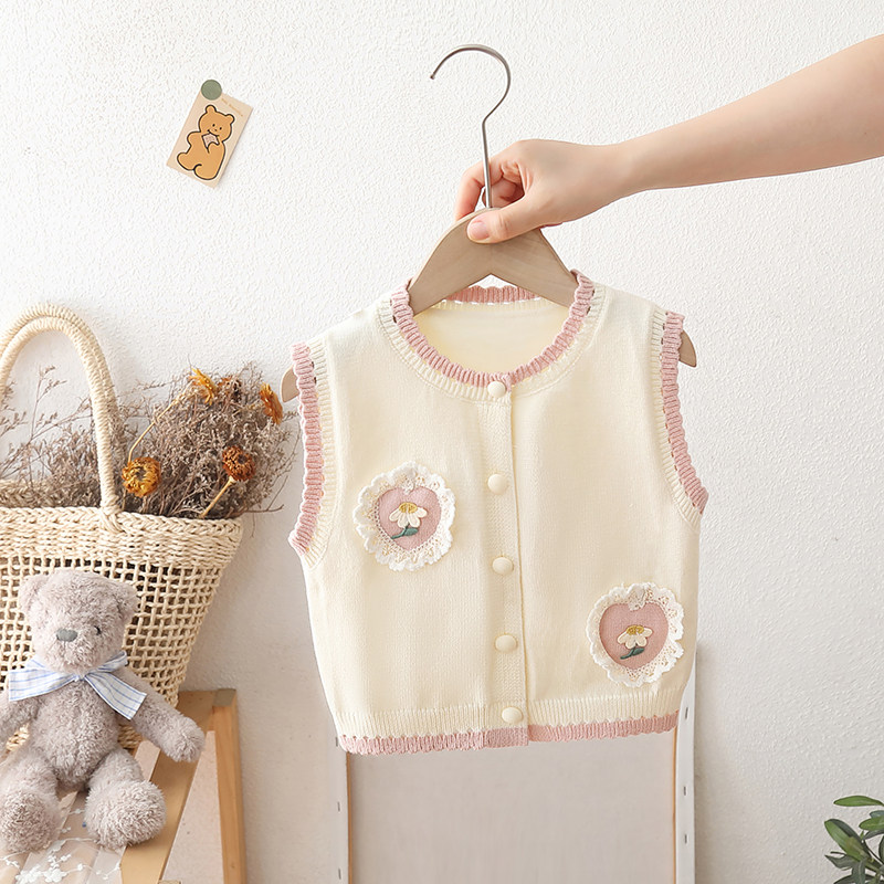 女童毛衣背心针织小童马甲秋季儿童甜美爱心公主宝宝婴儿坎肩外穿