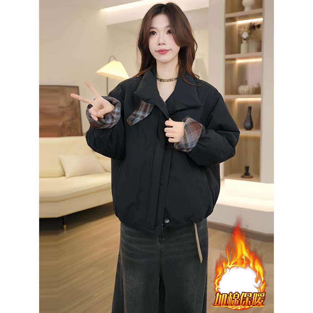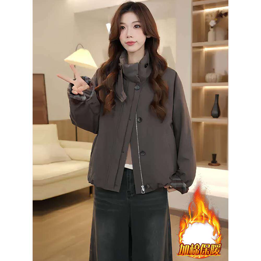 棉服女款2025新款冬季加绒宽松休闲百搭超好看小棉袄加厚保暖外套
