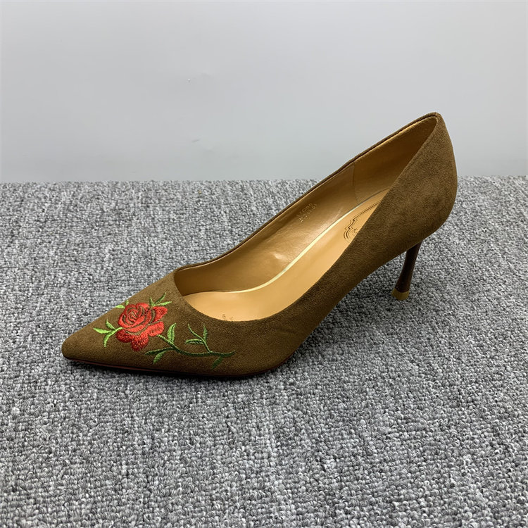 断码处理复古高跟鞋女2025春夏季新款尖头浅口绒面百搭细跟女单鞋