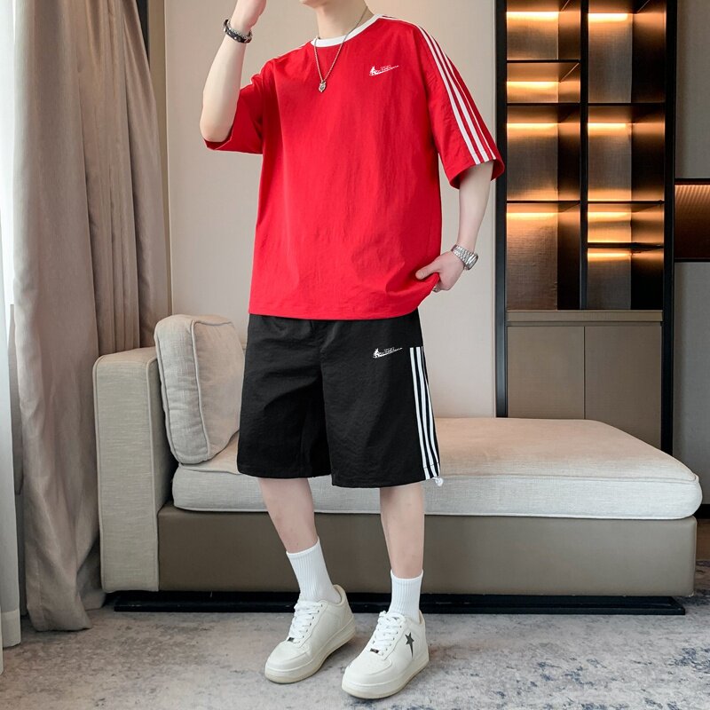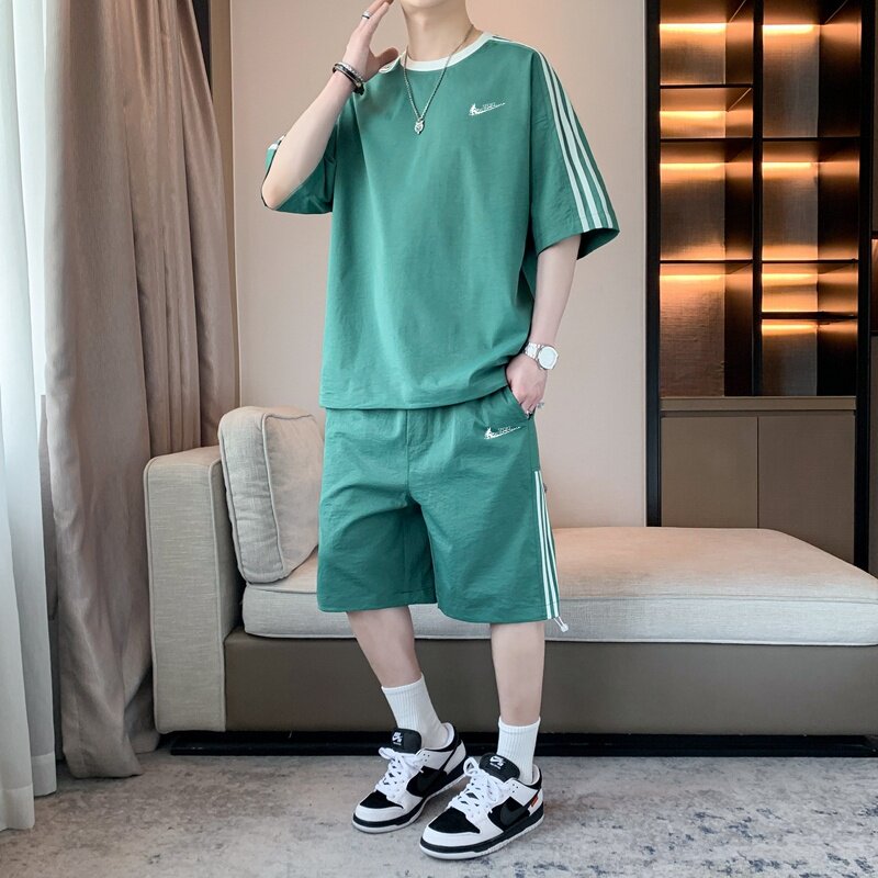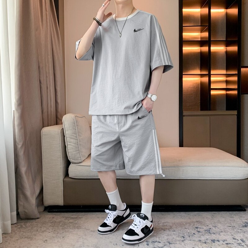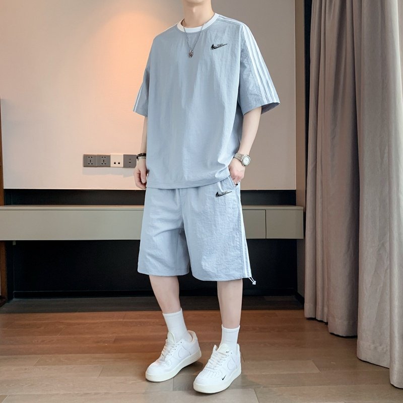 耐克顿运动服套装男夏季冰丝速干短袖短裤青少年帅气休闲两件套薄