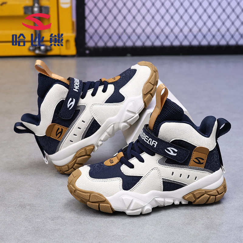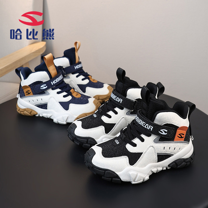 哈比熊男童运动鞋新款秋冬季皮面防水加绒中大童鞋子儿童休闲鞋男