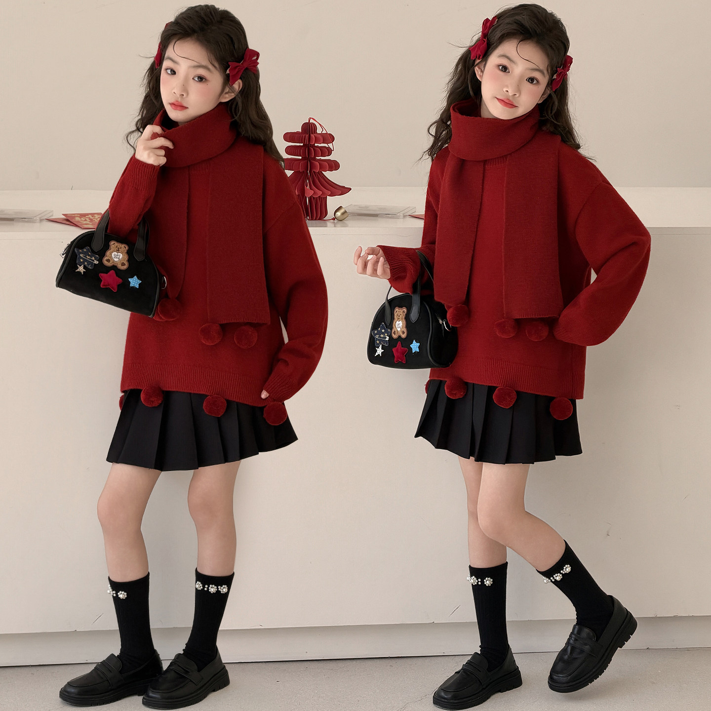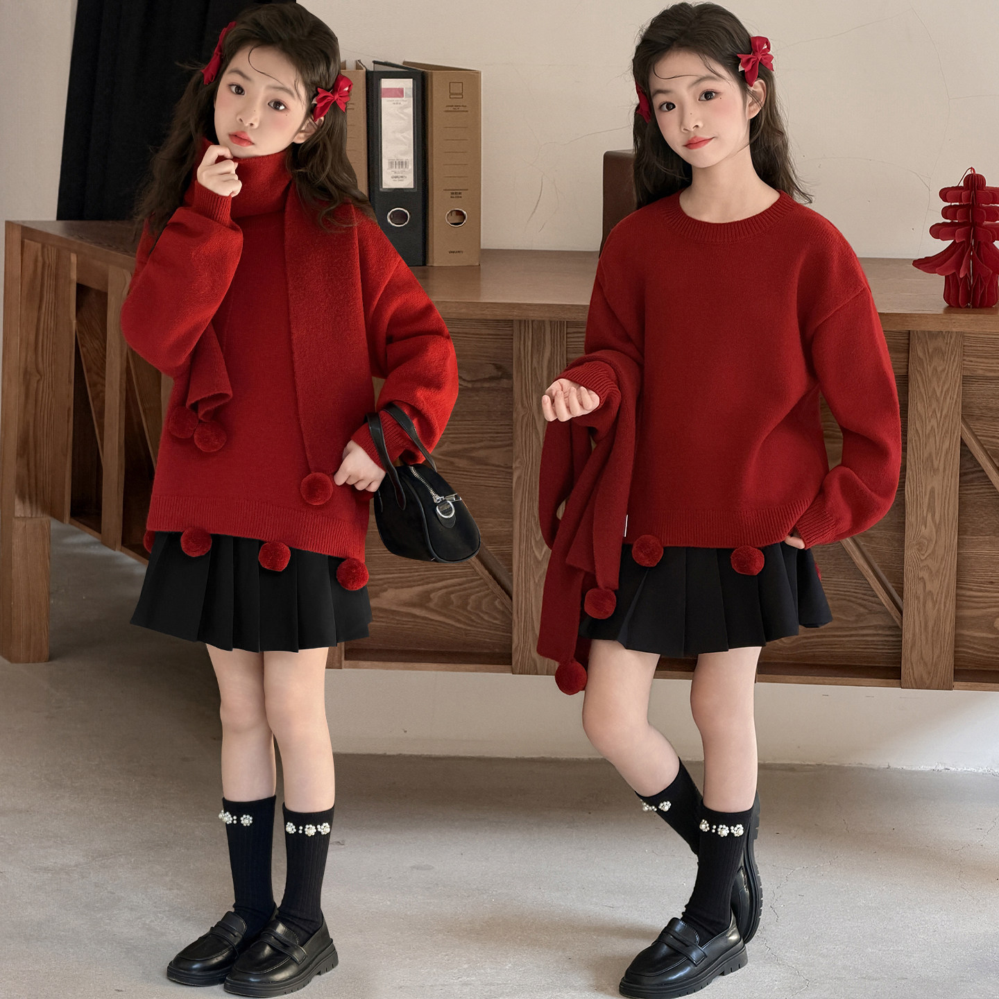女童毛衣冬季新款打底衣中大童女孩裙子爆款针织衫套装童装衣服潮