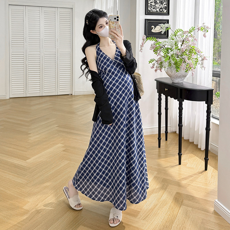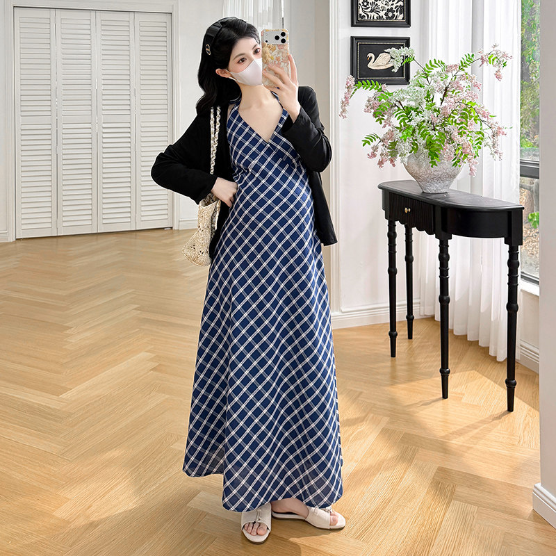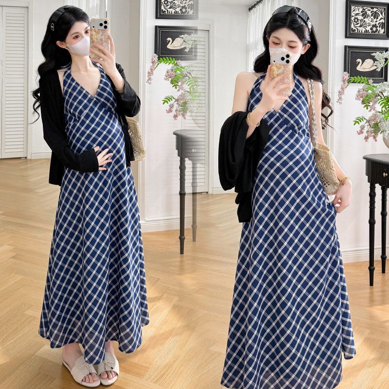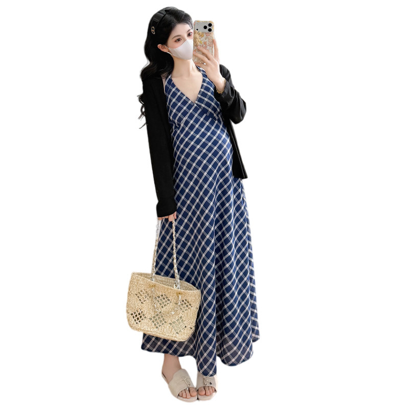 实拍现春夏款新款韩系高级感孕妇装中长款背心连衣裙搭配开衫外套