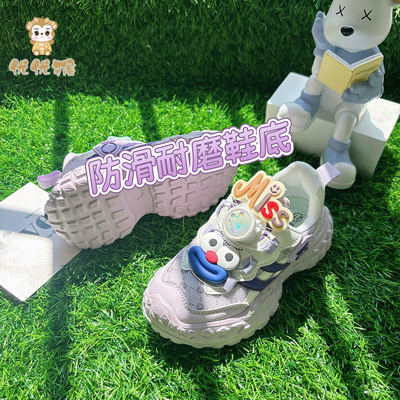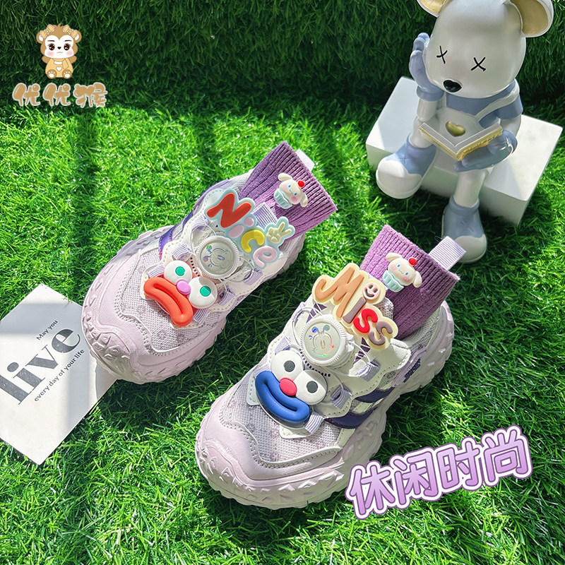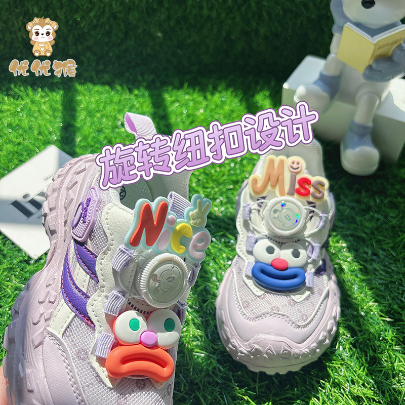 女童紫色运动鞋轻便跑步软底耐脏2025新款秋季幼儿童鞋子网面透气