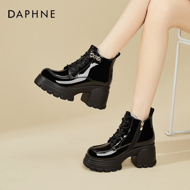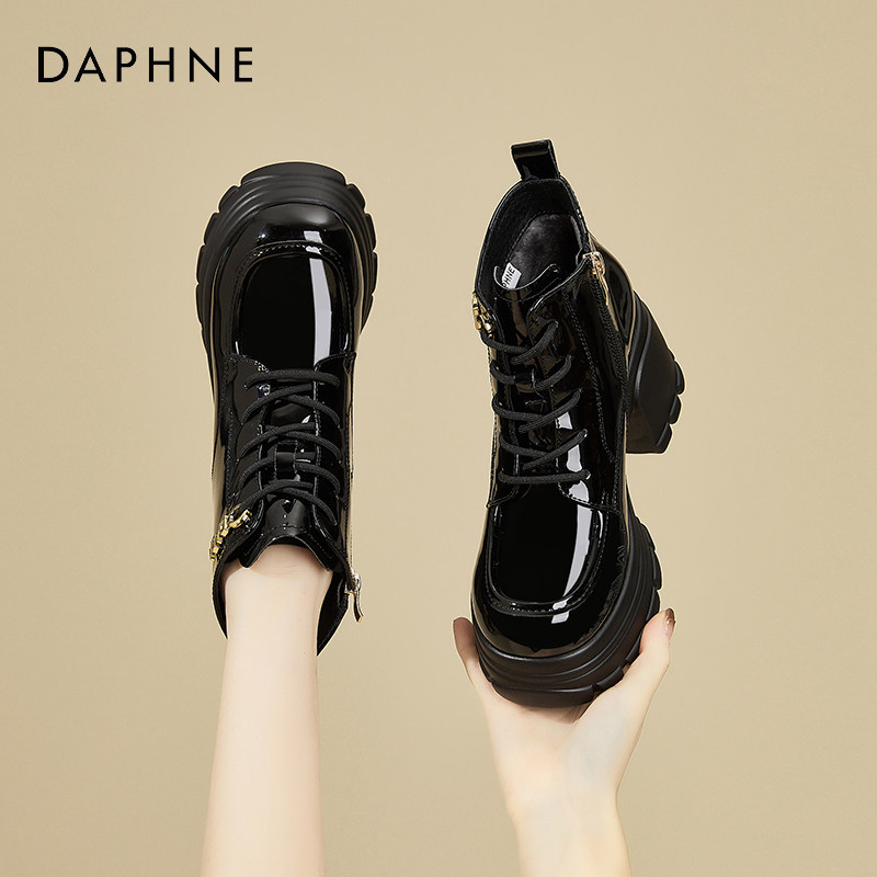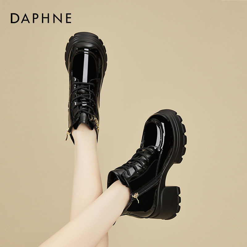 311线报网描述:达芙妮8CM增高黑色马丁靴
