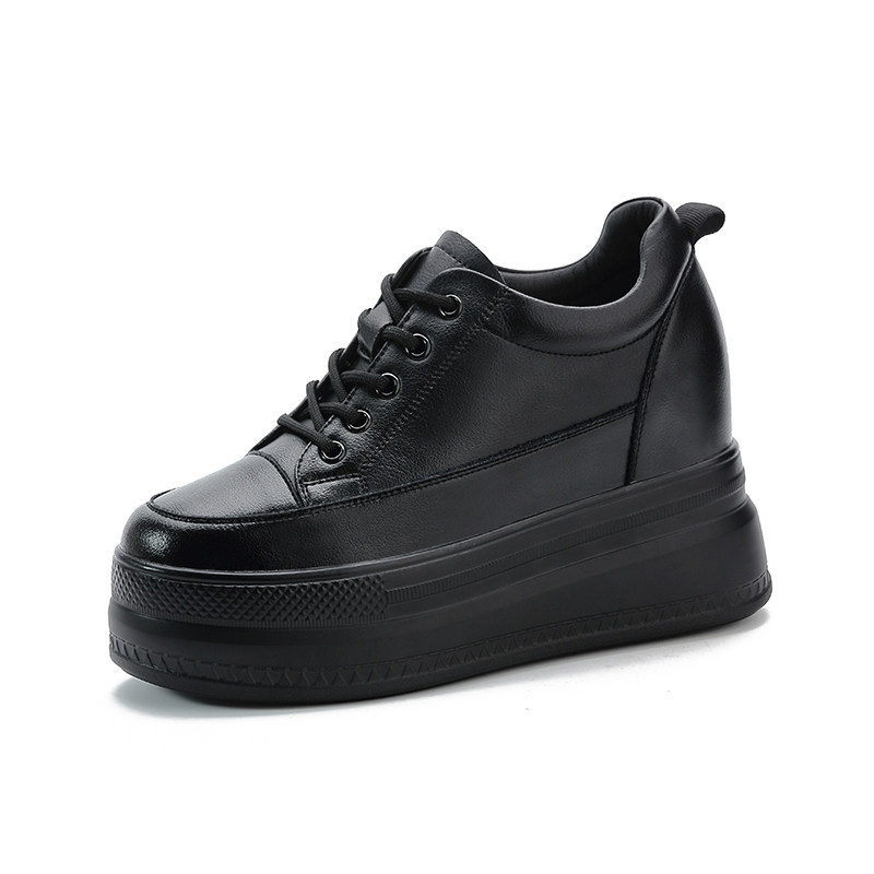 黑色内增高女鞋小个子春秋厚底松糕跟显高增高8cm10cm休闲运动鞋