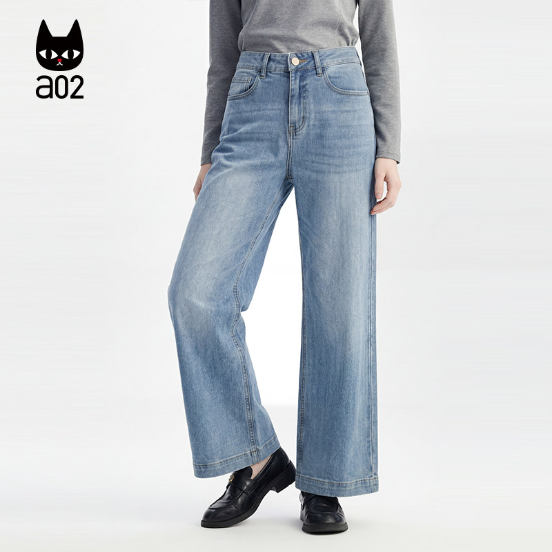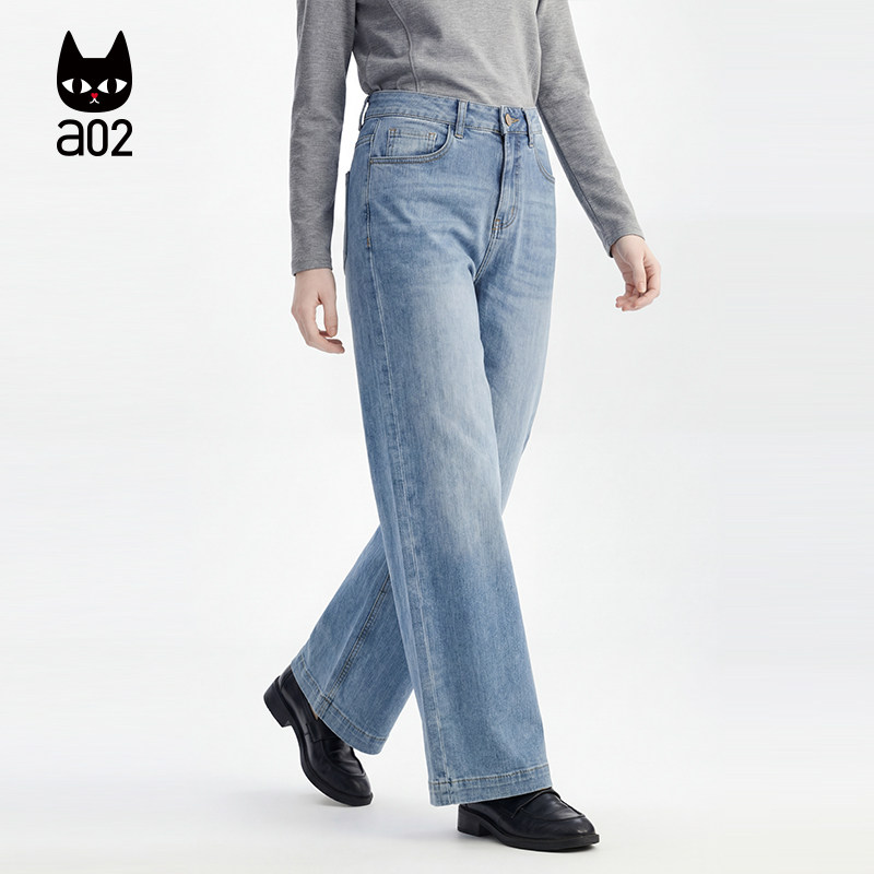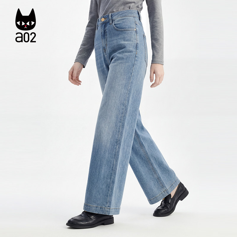 a02薄款直筒牛仔裤子女款2026新款夏季九分裤通勤阔腿休闲裤子