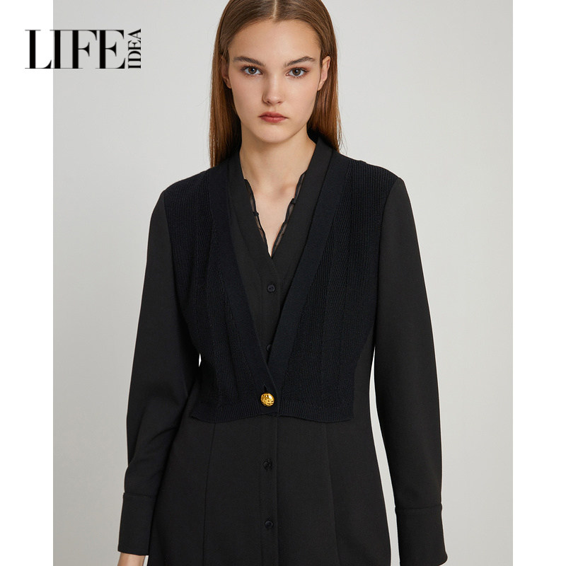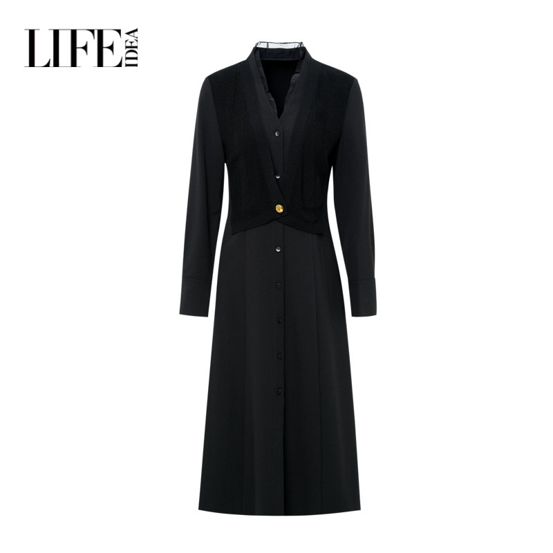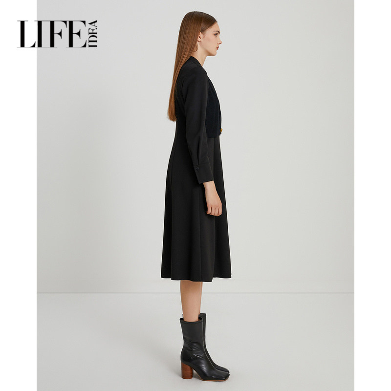 莱芙艾迪儿气质优雅百搭修身显瘦中长袖连衣裙女秋冬新款内搭裙