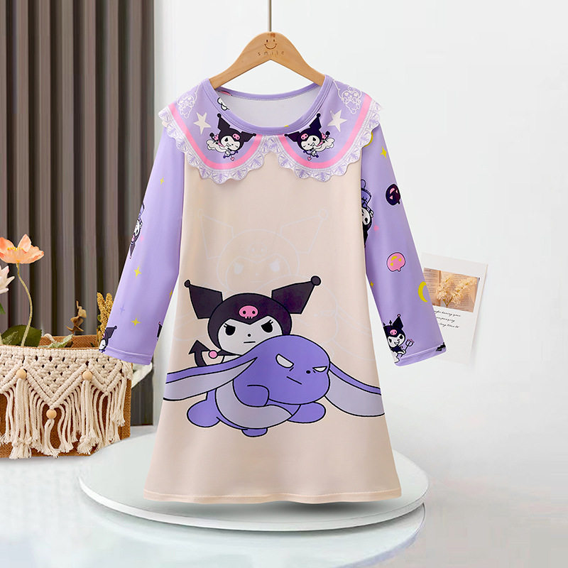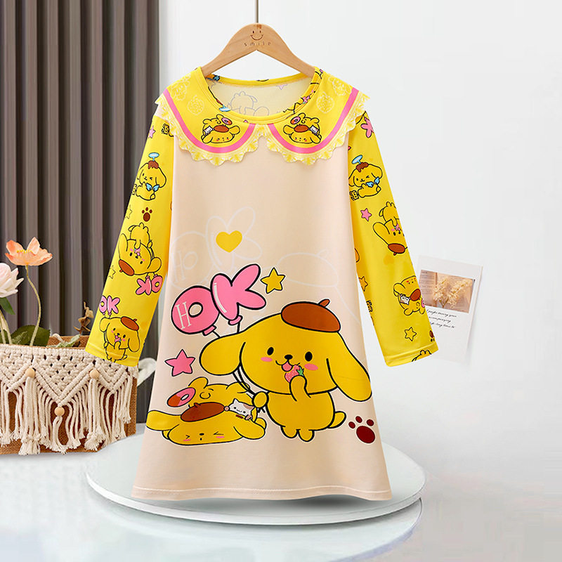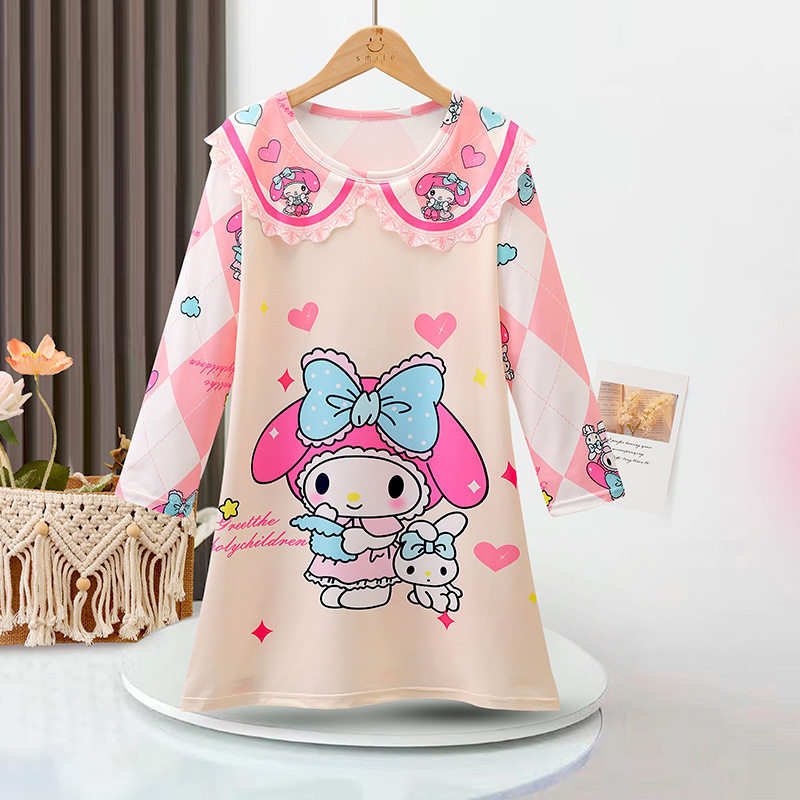 melody女童长袖睡裙卡通薄款宽松牛奶丝连衣裙休闲家居睡衣2024夏