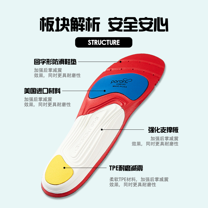 川崎美国进口材料运动鞋垫 男女透气高弹加厚跑步羽毛球军训防臭