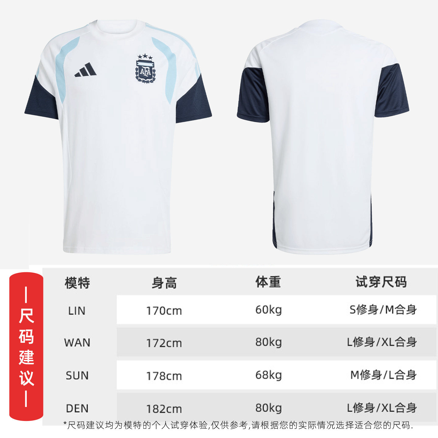 天朗足球阿迪达斯2026世界杯阿根廷运动训练短袖球衣足球服JY7029