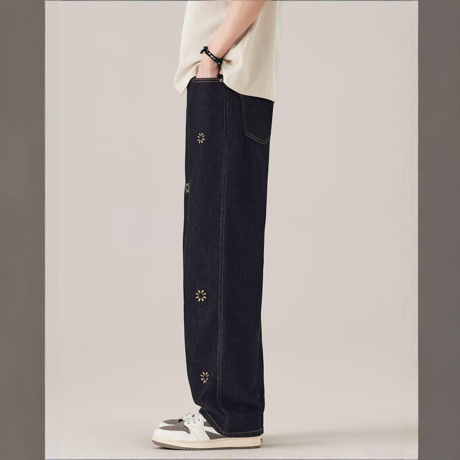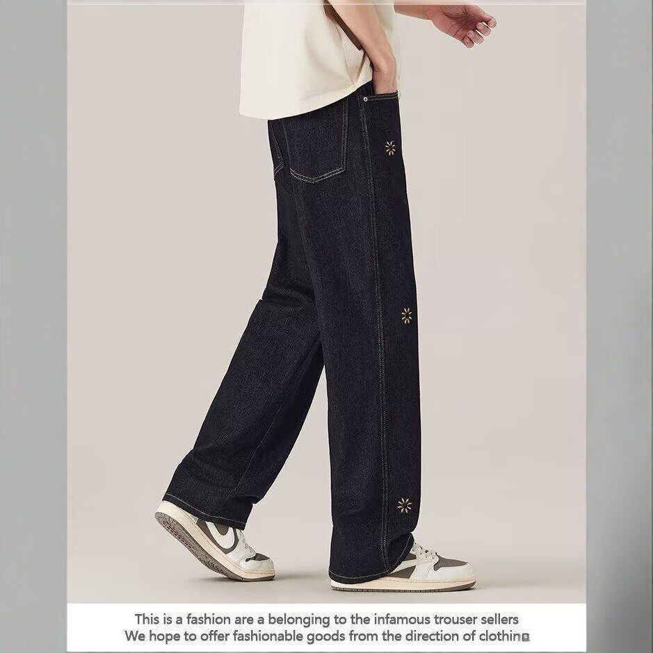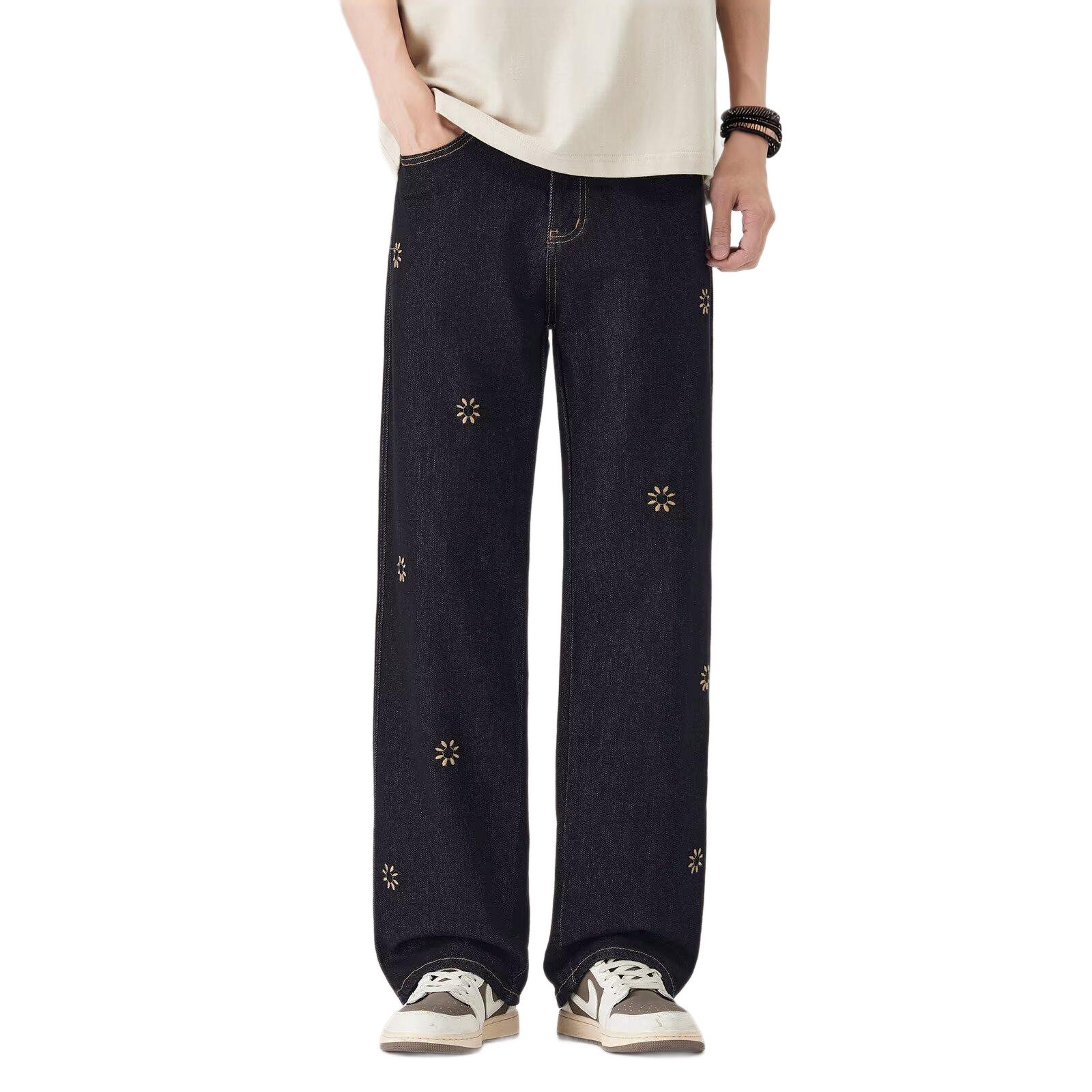 Yuquan2026新款美式黑色刺绣牛仔裤男款直筒宽松阔腿垂感潮流休闲