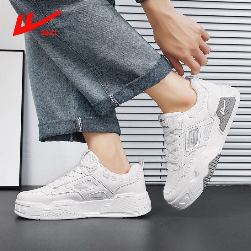 回力春季鞋子男青少年皮面板鞋韩版潮流爆款小白鞋学生白色运动鞋