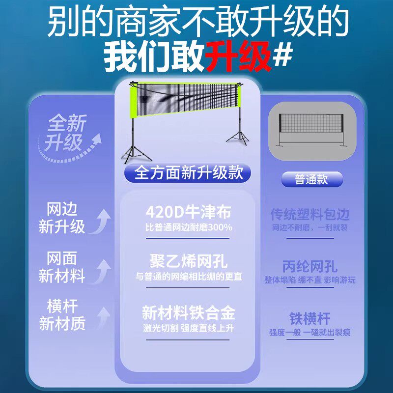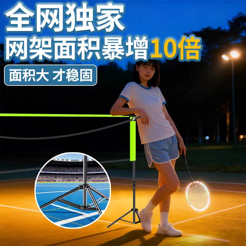 新款羽毛球网架便携式简易可折叠室内家用户外场地标准拦网柱架子