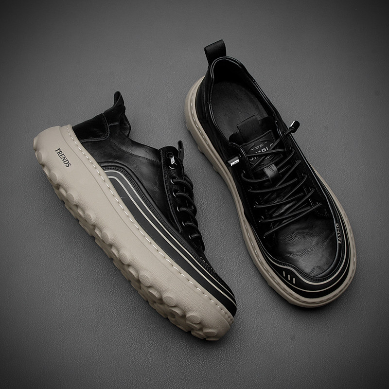 欧洲站男鞋秋季2025真皮时尚休闲鞋男潮流百搭厚底纯牛皮鞋子男款