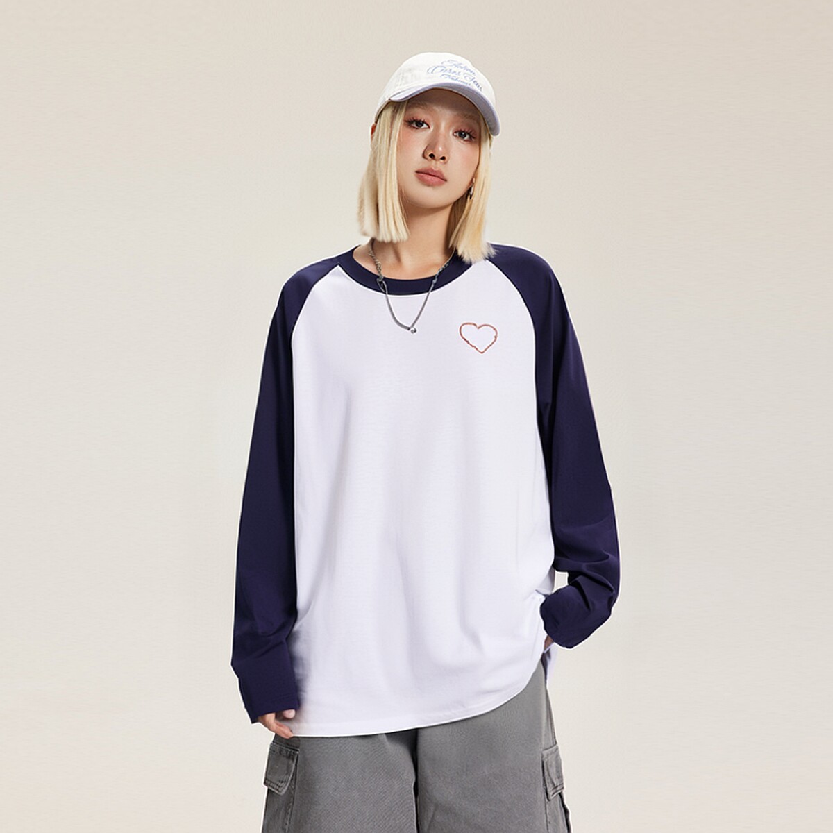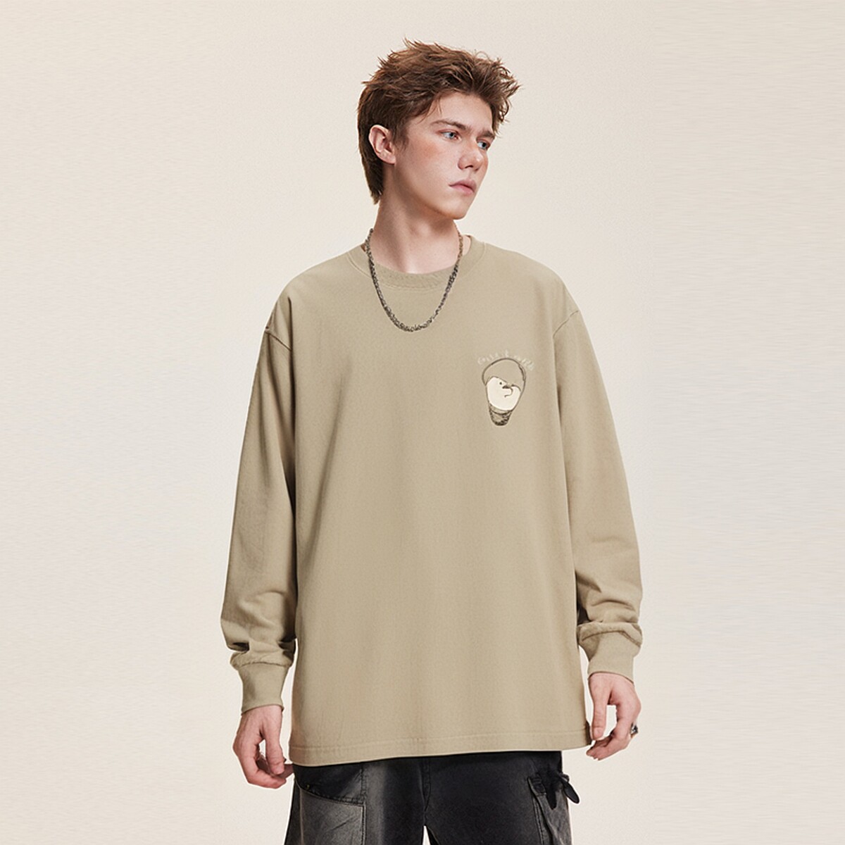 美式套头长袖t恤男女款青少年宽松显瘦打底衫圆领休闲百搭上衣服