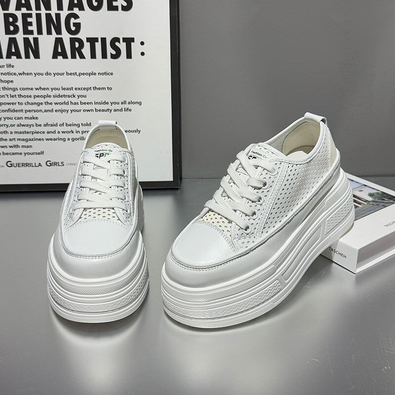 超轻便厚底小白鞋女2025夏季新款透气镂空内增高女鞋运动休闲板鞋