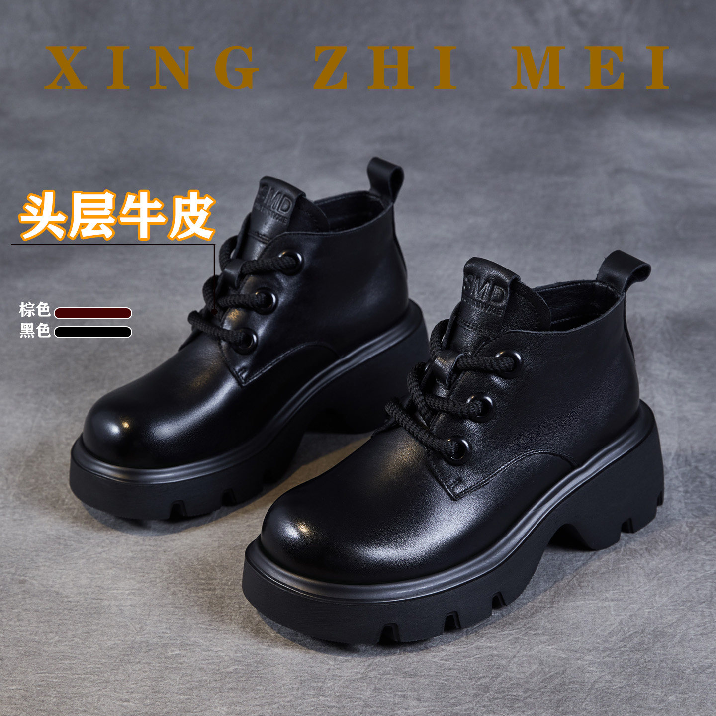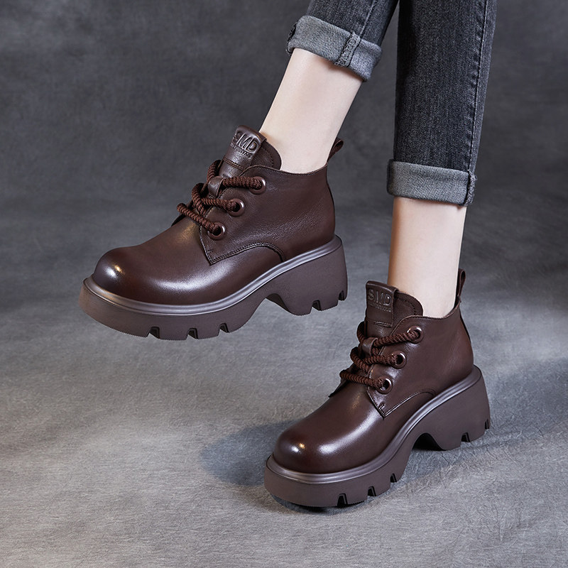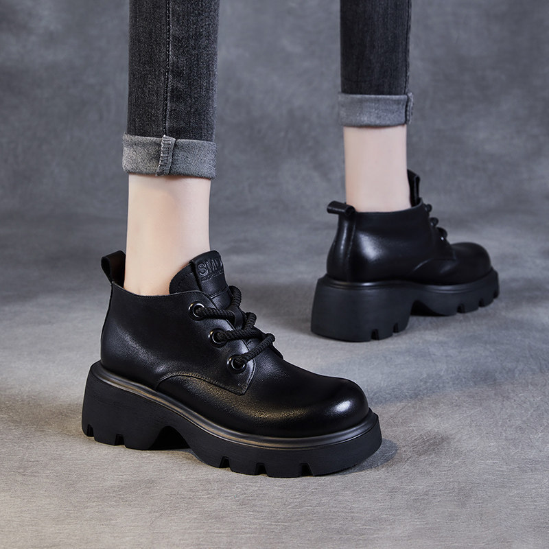 头层牛皮粗跟马丁靴女2026新款秋冬季加绒真皮短靴复古高帮小皮鞋