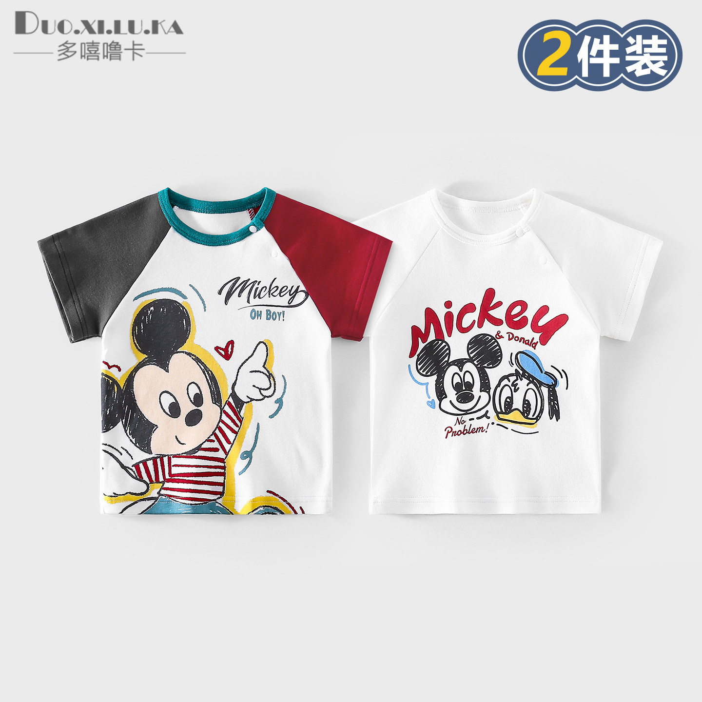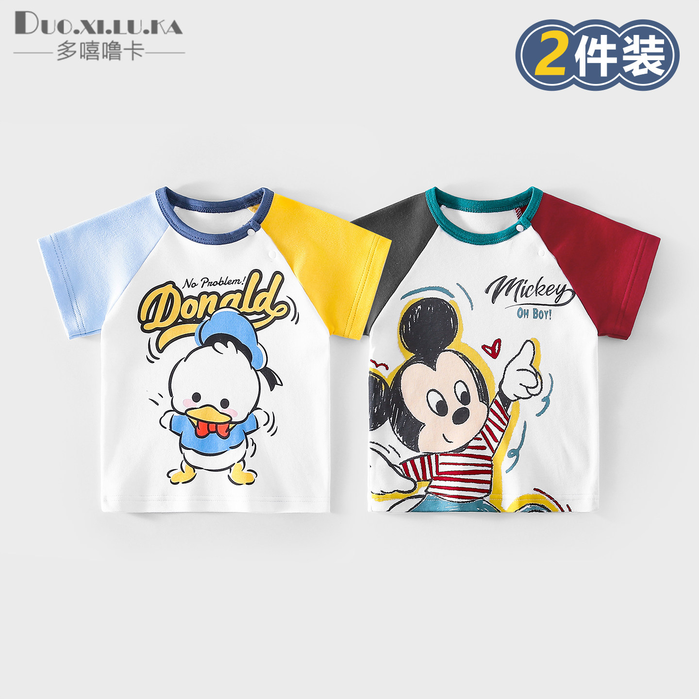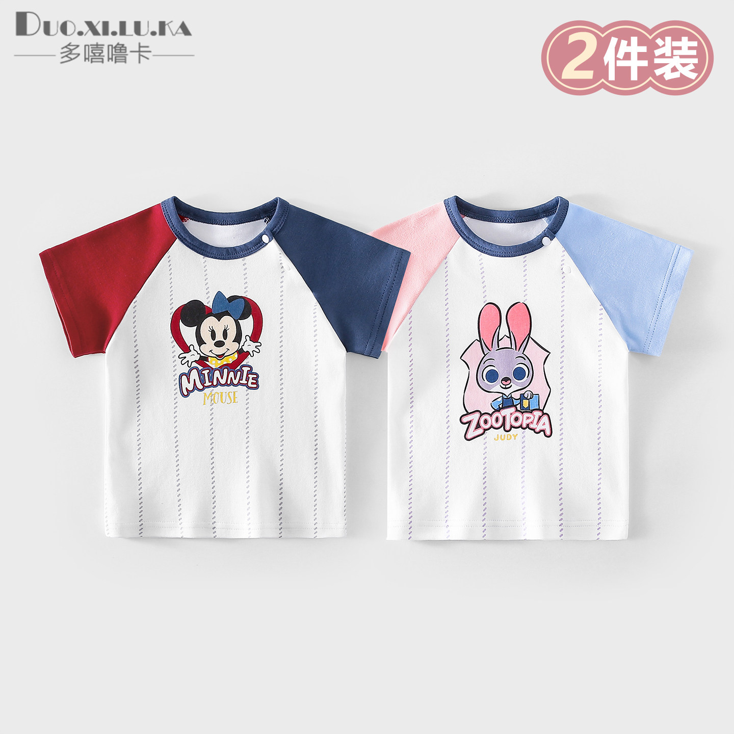 2件 童装男女童t恤短袖夏季薄款休闲打底衫中小童纯棉卡通上衣1岁