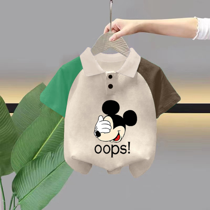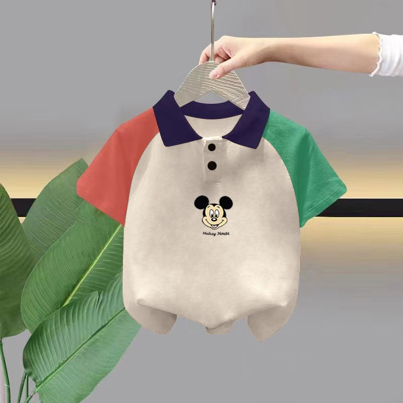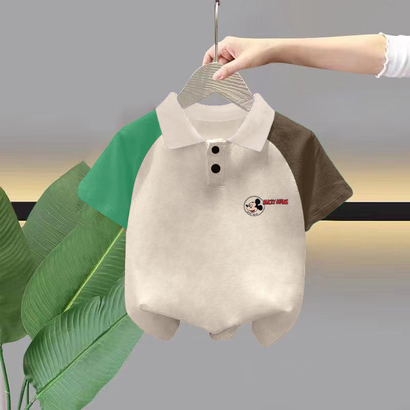 100%纯棉男童装插肩polo翻领短袖t恤夏季中大儿童宝宝印花上衣服